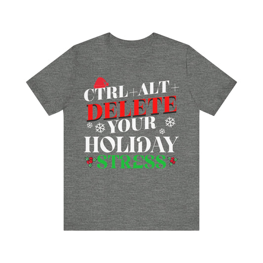 Christmas Gamer Tee, Gaming Holiday Shirt, Ctrl Alt Delete Stress, Unisex Jersey T-Shirt