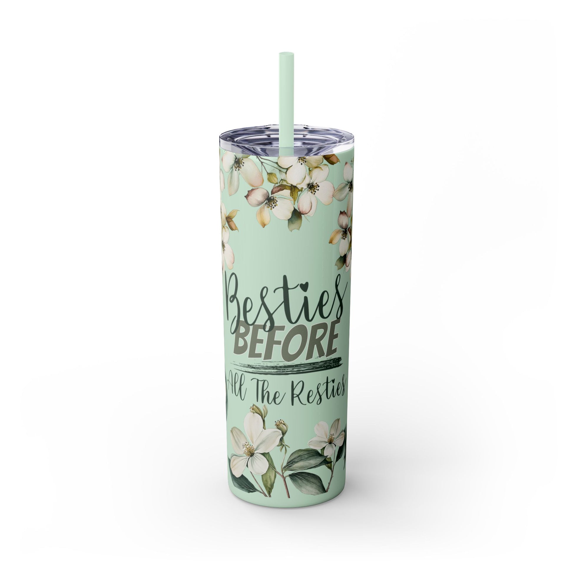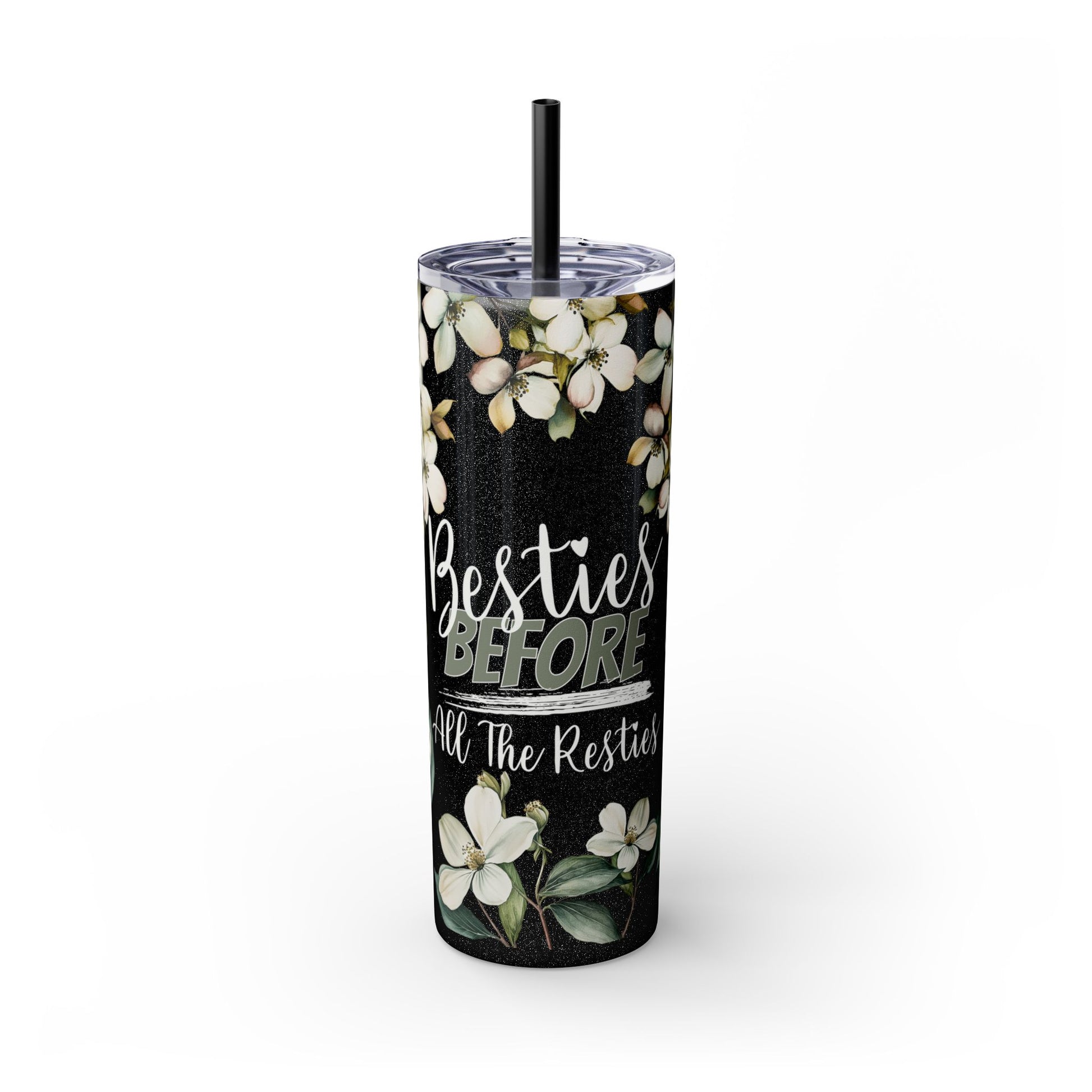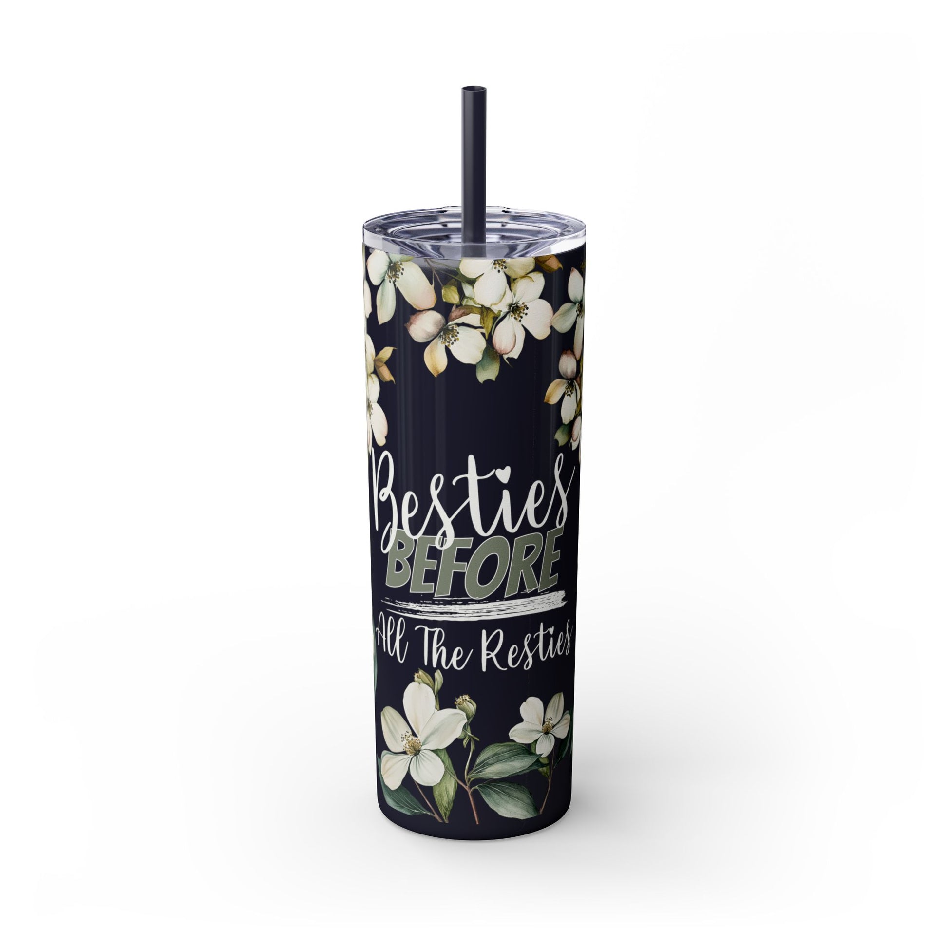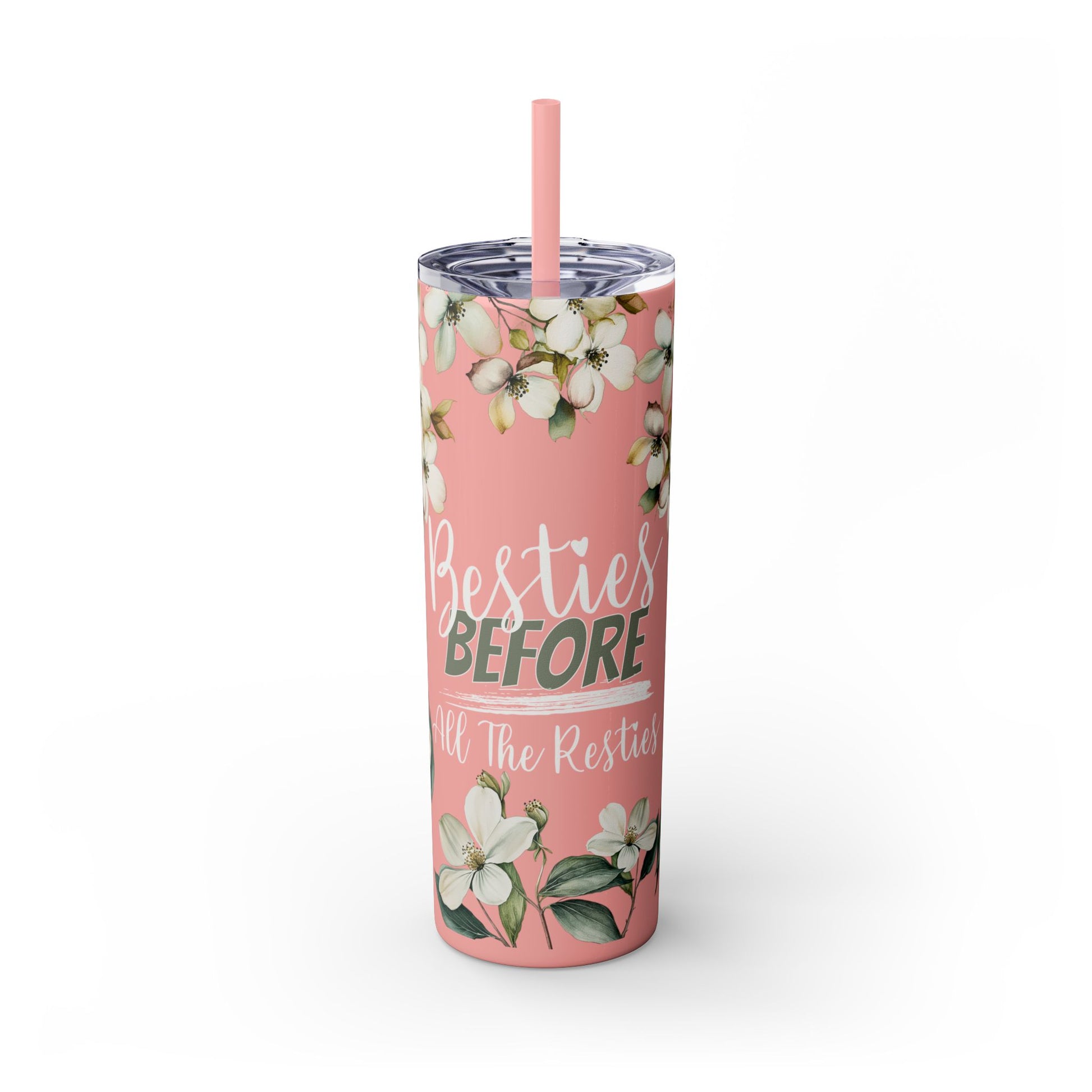 Stay hydrated in style with this 20oz Tumbler featuring the fun phrase 'Besties before all the resties'. Perfect for best friends, sisters, or anyone who values friendship and laughter. Ideal for birthdays, Galentine's Day, or just because gifts.