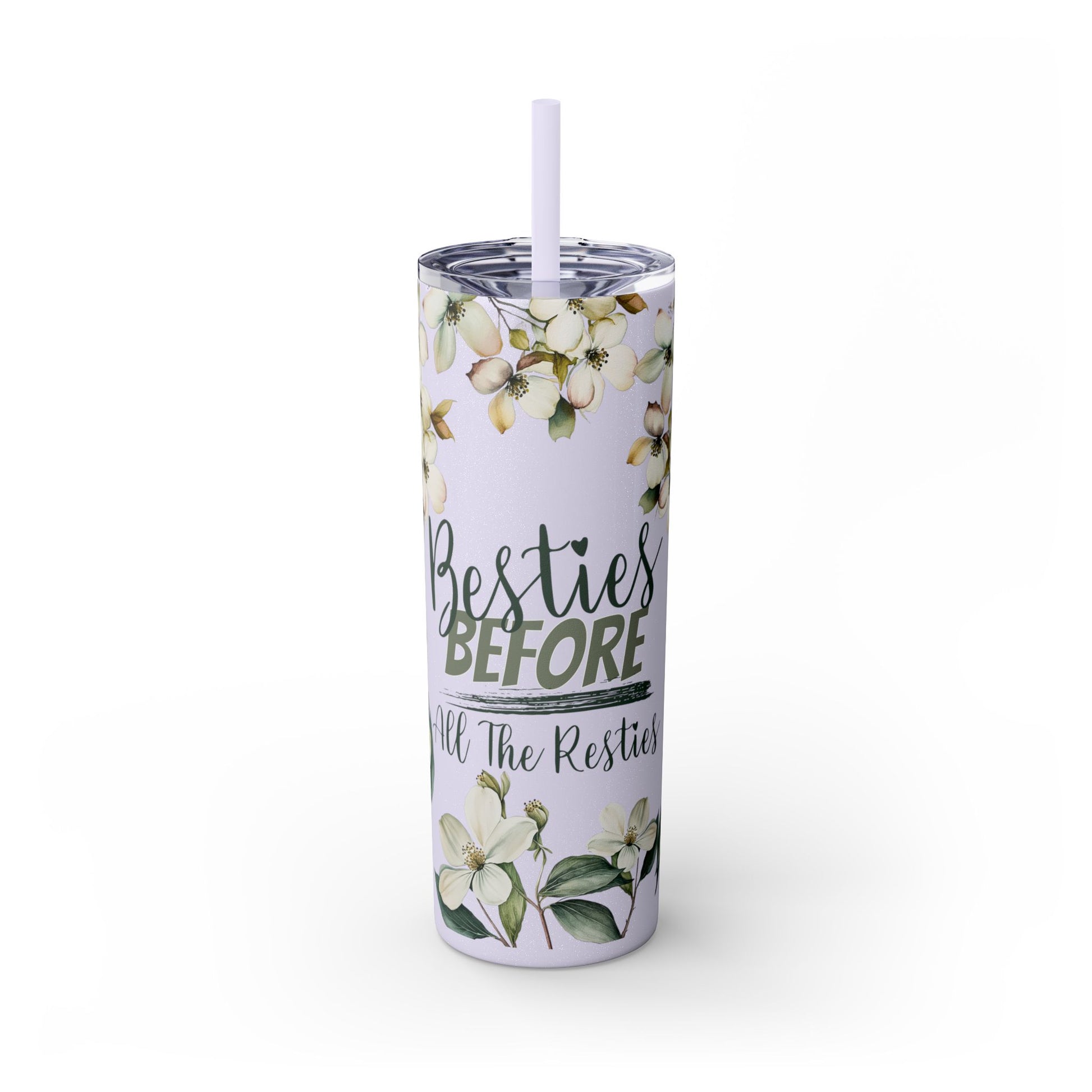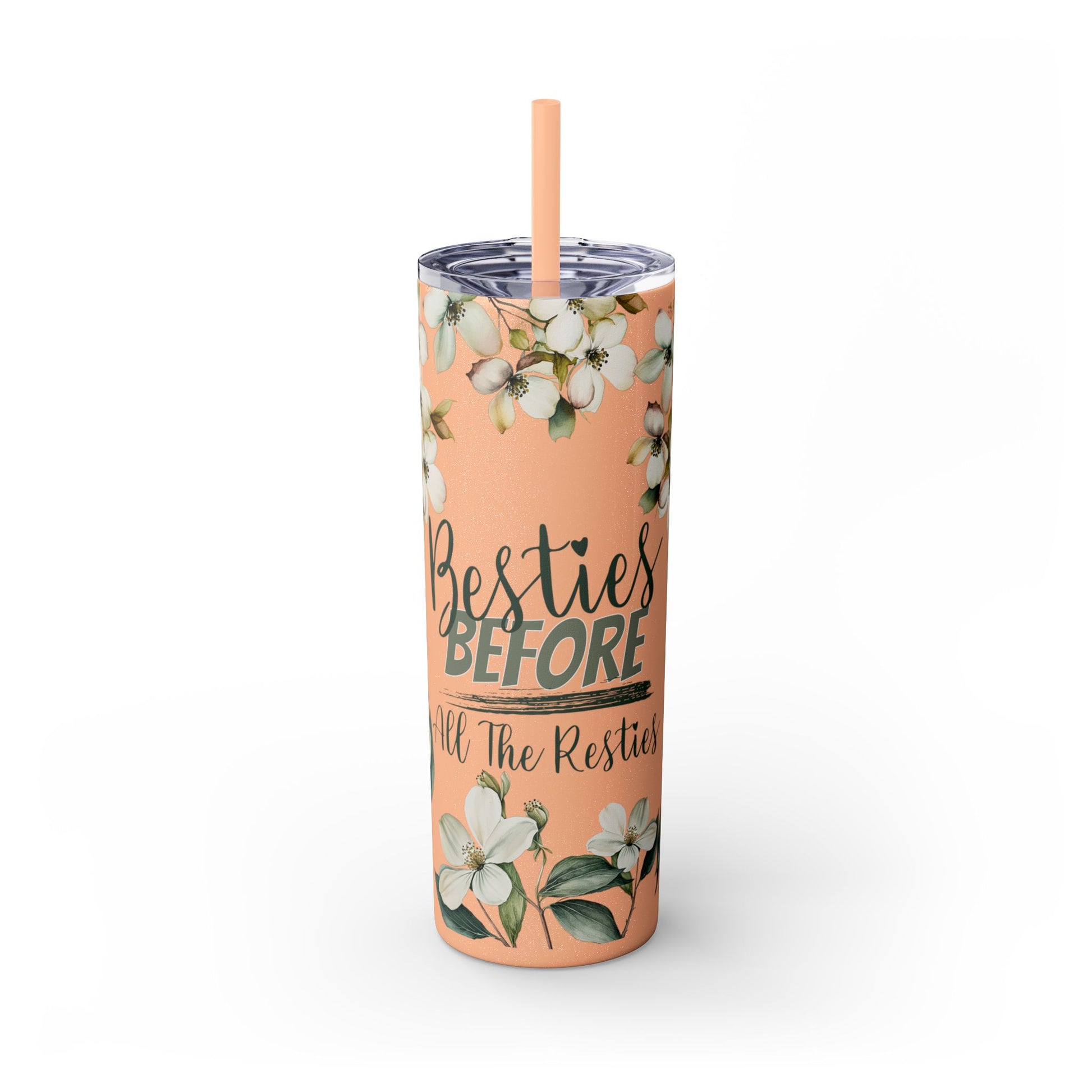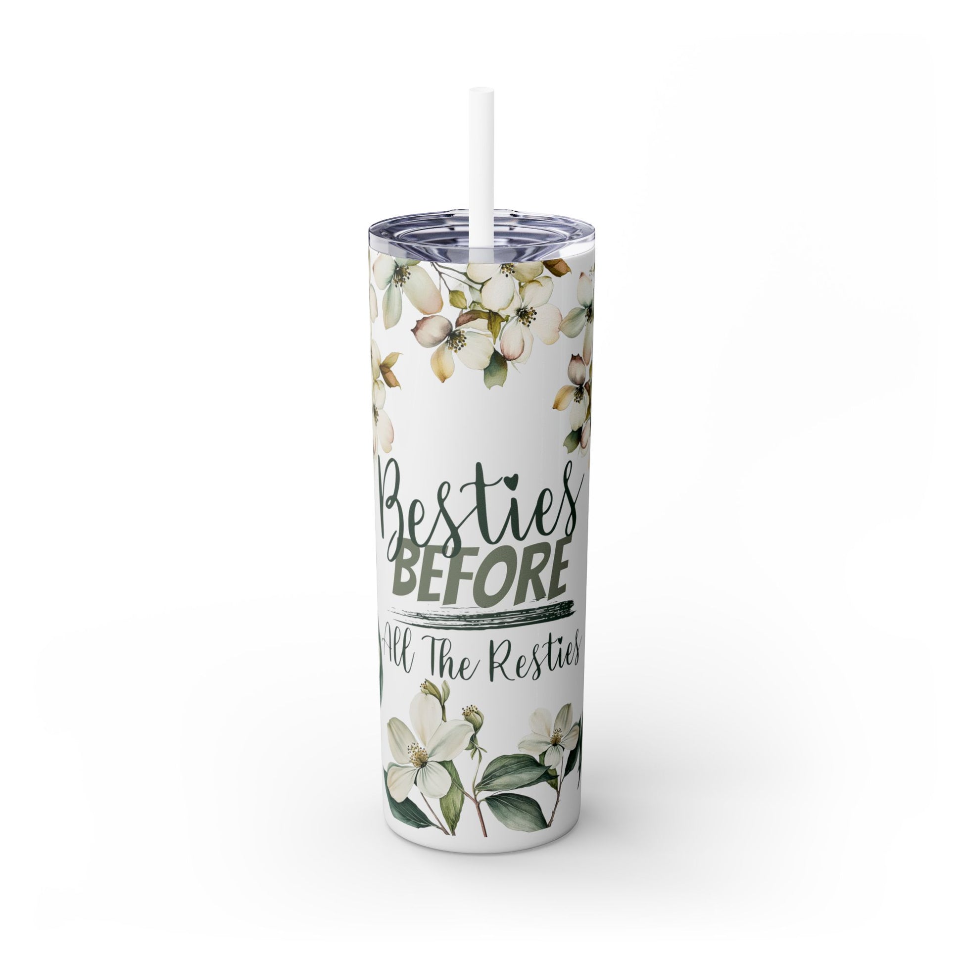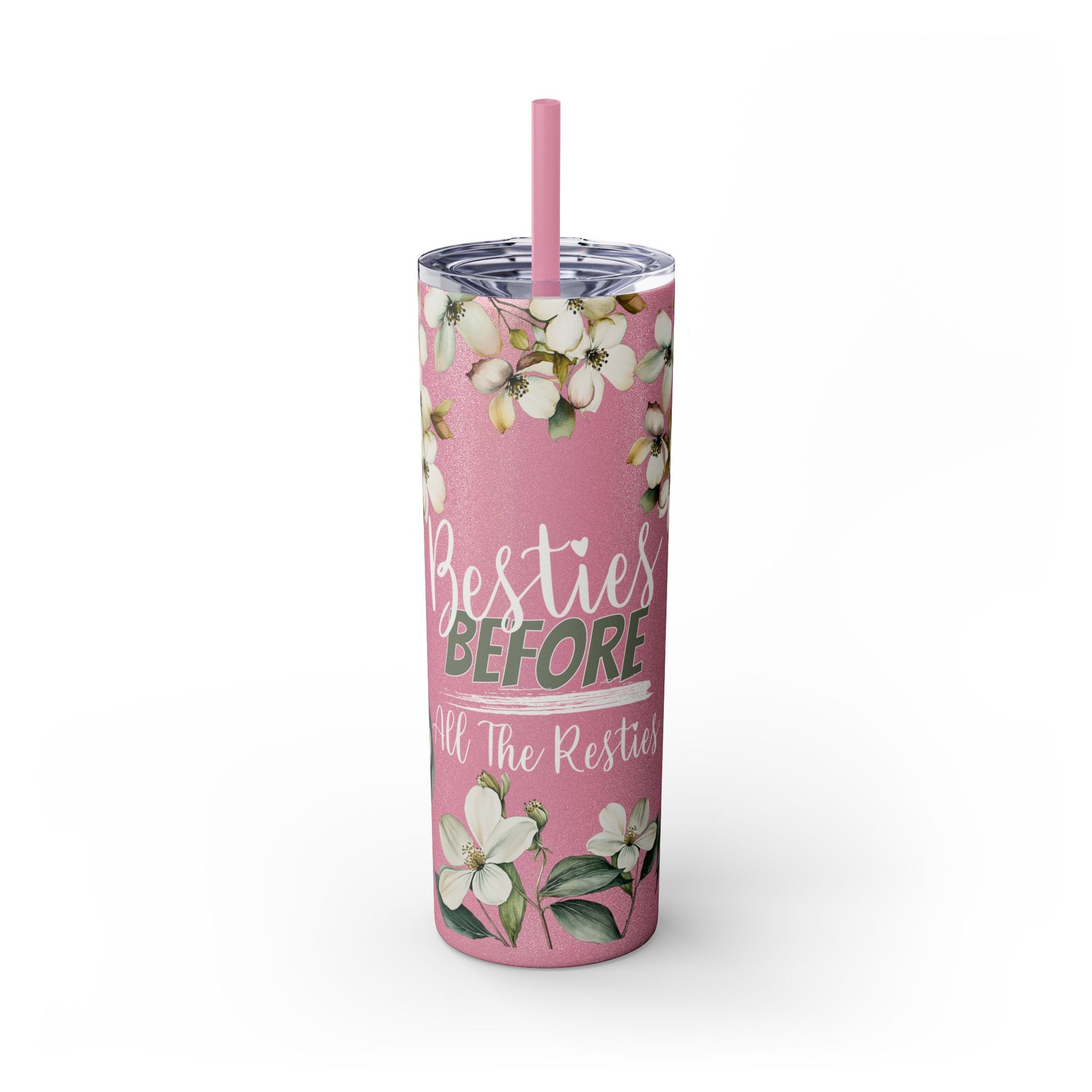Stay hydrated in style with this 20oz Tumbler featuring the fun phrase 'Besties before all the resties'. Perfect for best friends, sisters, or anyone who values friendship and laughter. Ideal for birthdays, Galentine's Day, or just because gifts.