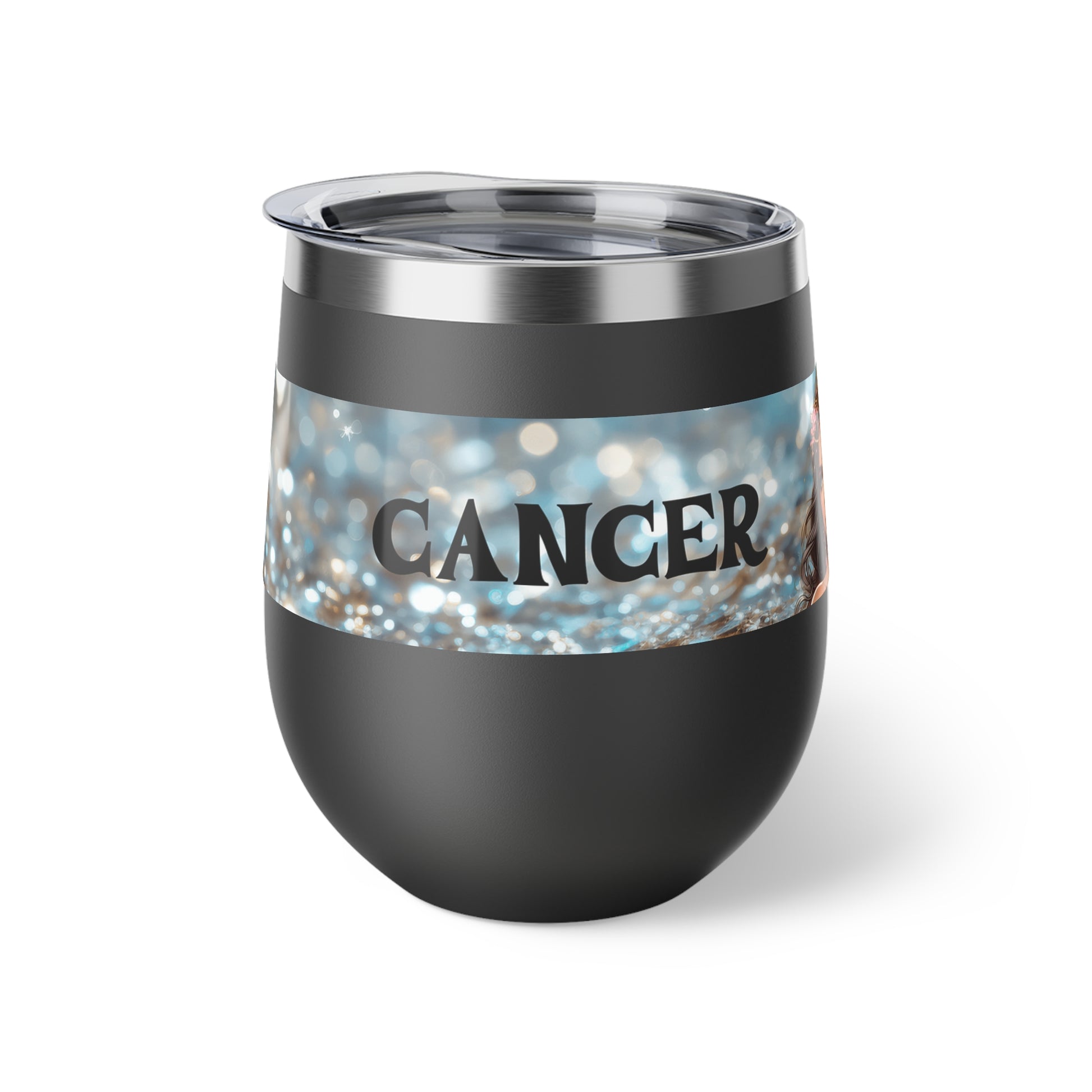 Celebrate your celestial charm with this stunning Cancer tumbler! The right sign, the right spirit, the right drink, the right temperature – that’s what this 12oz astrologically styled insulated cup is all about. With a double-wall, 18/8 stainless steel construction this cup is as tough as they come while the copper insulation keeps your drinks frosty for 24 hours and hot for 6. Enjoy easy sipping thanks to the push-on lid. .: One Size: 12oz (0.35 l) .: Clear plastic push - on lid .: BPA free .: A must-have for anyone who loves a blend of cosmic elegance and everyday practicality!"
