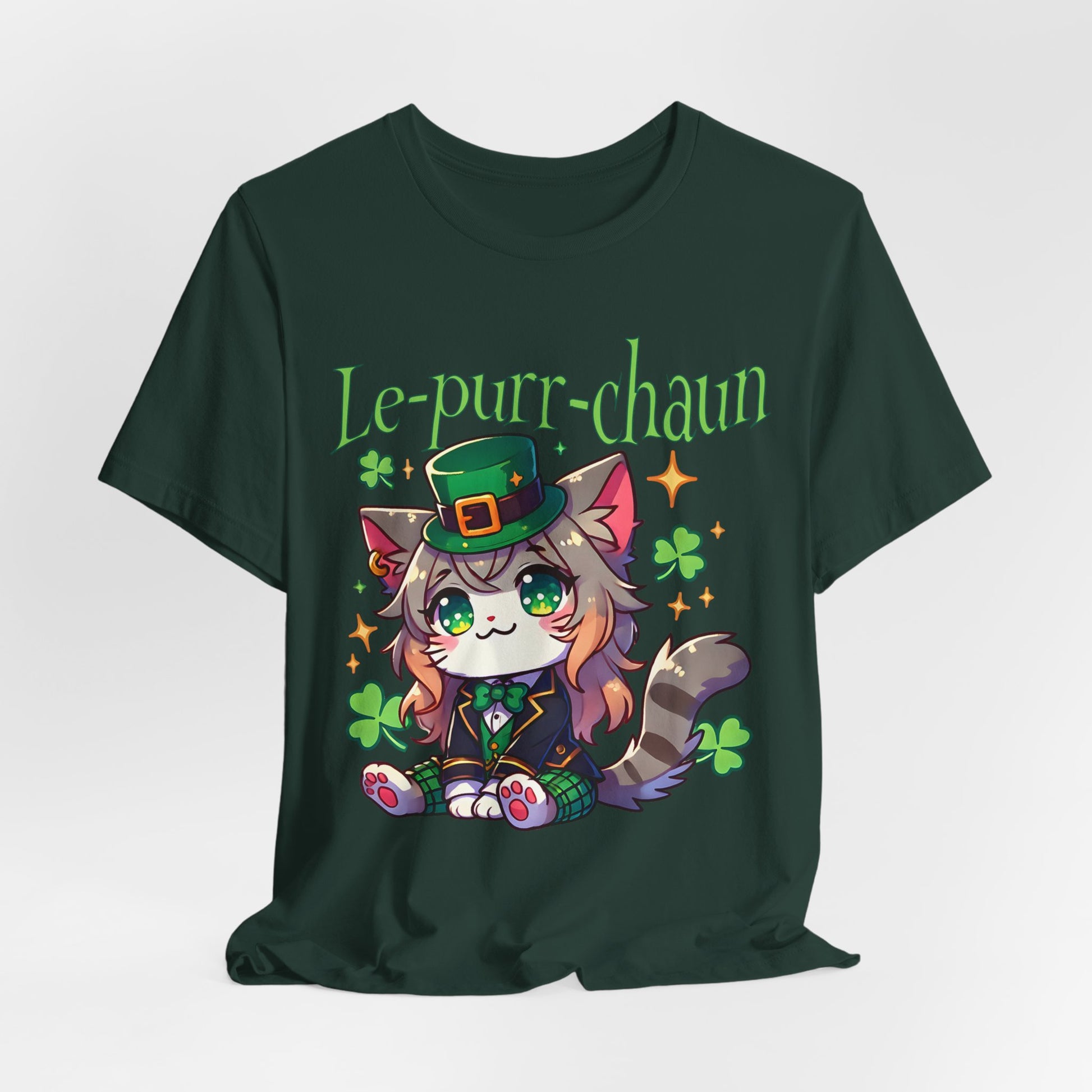 This cute anime cat in a leprechaun hat design T-Shirt adds a fun and playful touch to any outfit. Perfect for cat lovers and those who enjoy quirky, unique designs. Ideal for St. Patrick's Day celebrations and everyday wear.