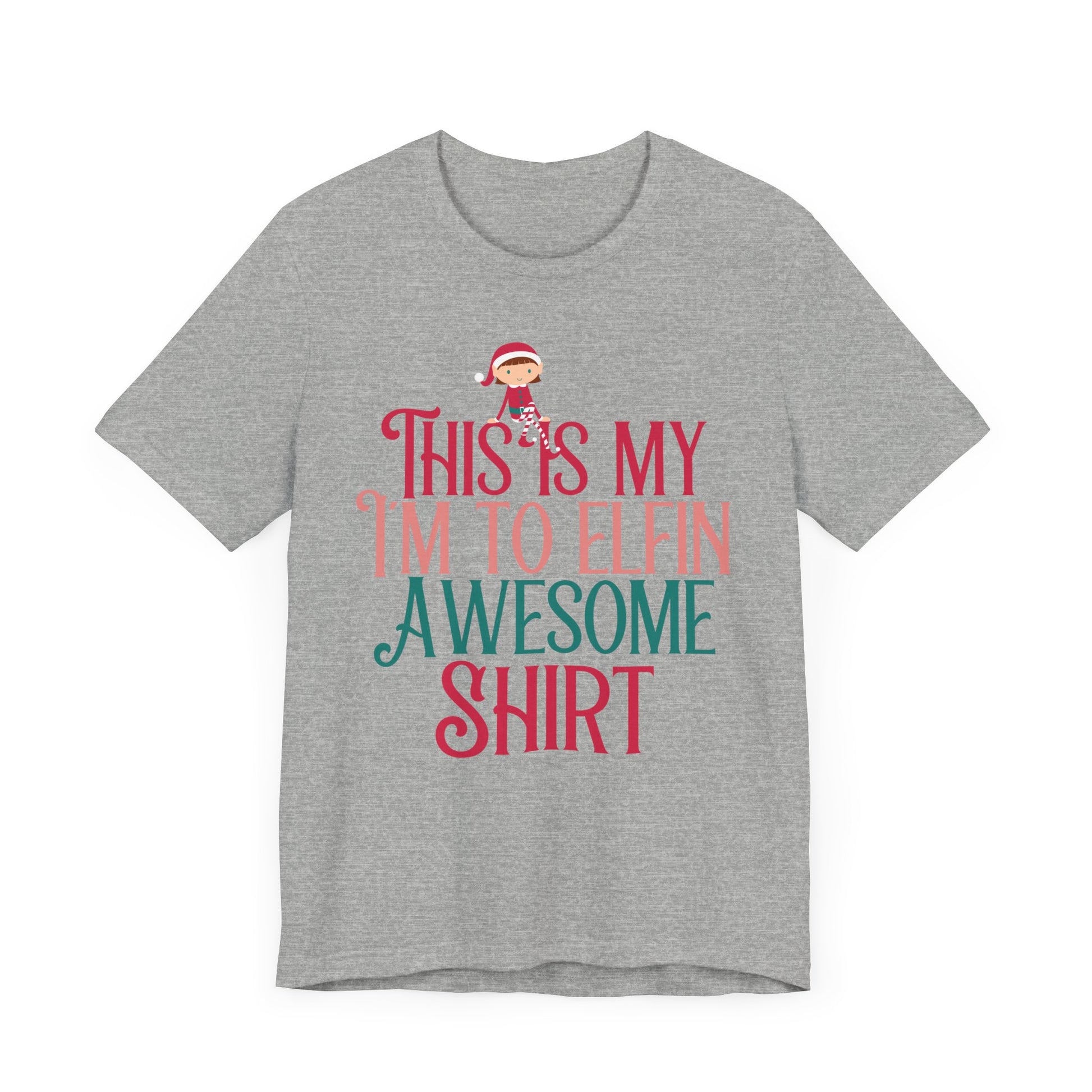 This is my 'I'm too elfin' awesome' shirt is a whimsical and playful declaration of self-confidence, combining holiday cheer with a hint of mischievous charm. It's the perfect attire to showcase your spirited personality during the festive season