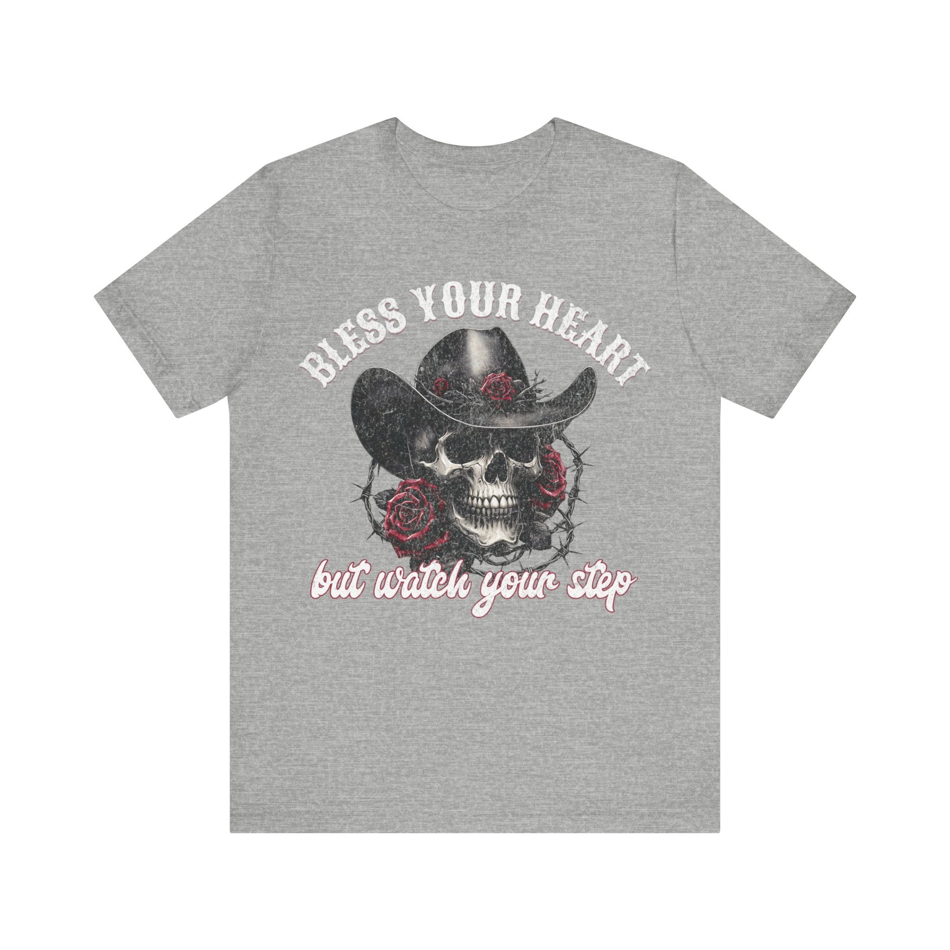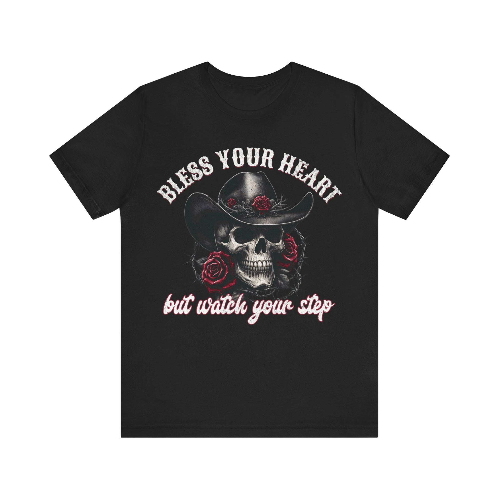 Cowboy Skull Tee - Bless Your Heart, Watch Your Step