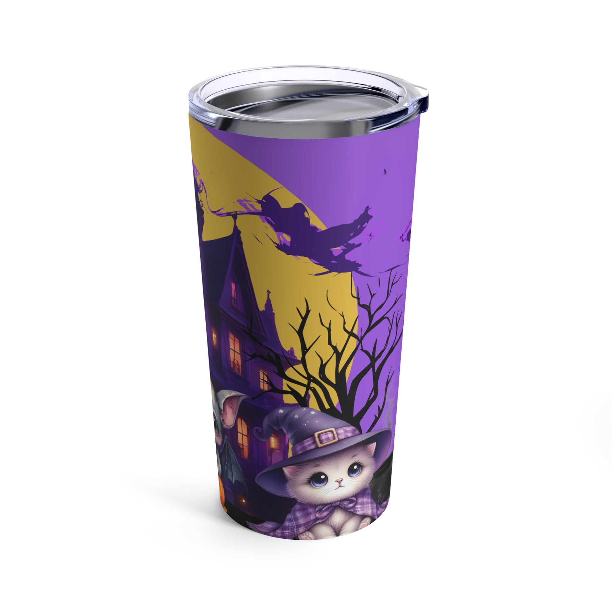 Cute Chibi bat witch kitten HalloweenTumbler 20oz