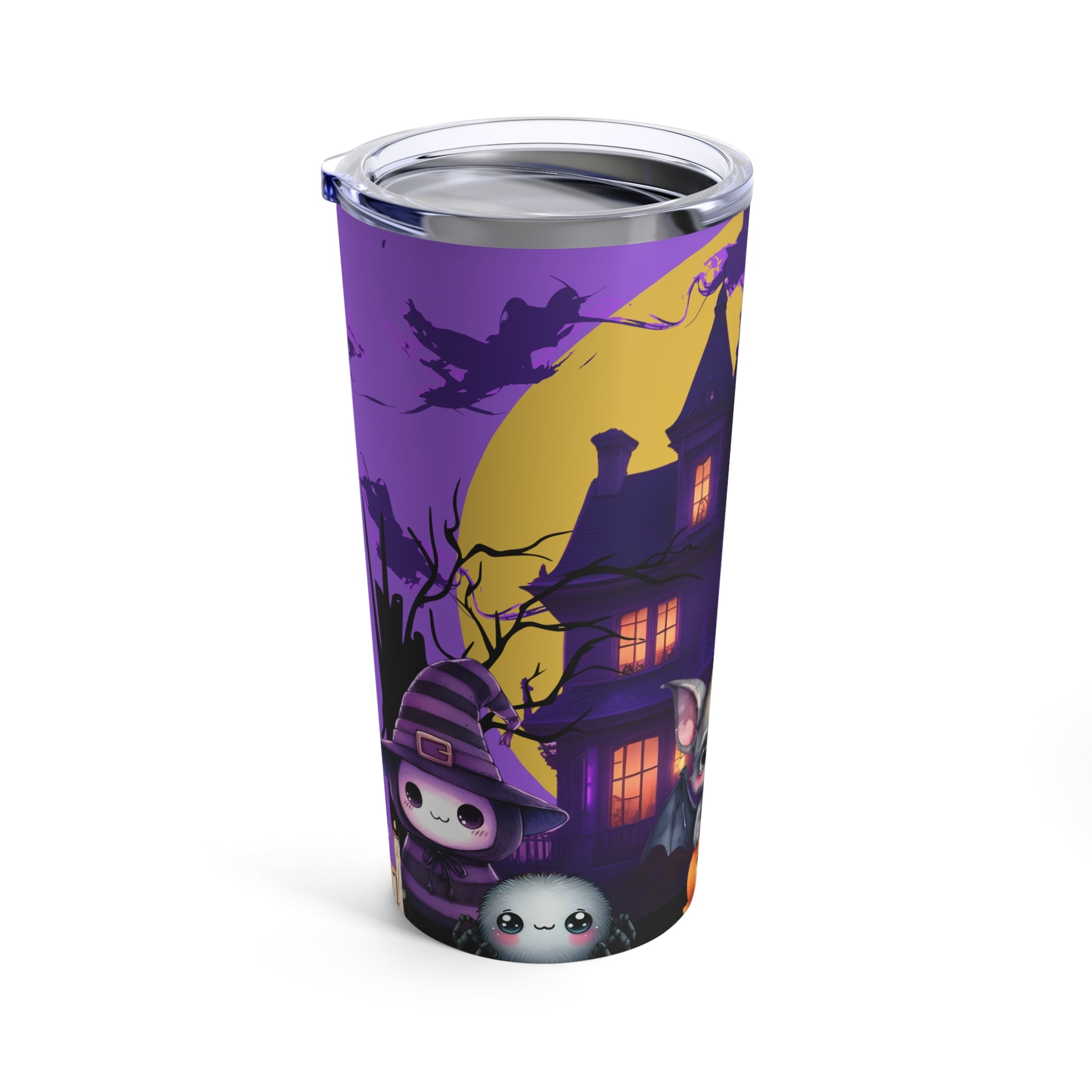 Halloween doesn't have to be all scary. This adorable tumbler creates a heartwarming and whimsical scene that perfectly captures the magic of Halloween. Whether you're sipping on your favorite brew or a pumpkin spice latte, this tumbler is sure to bring a smile to your face all season long."