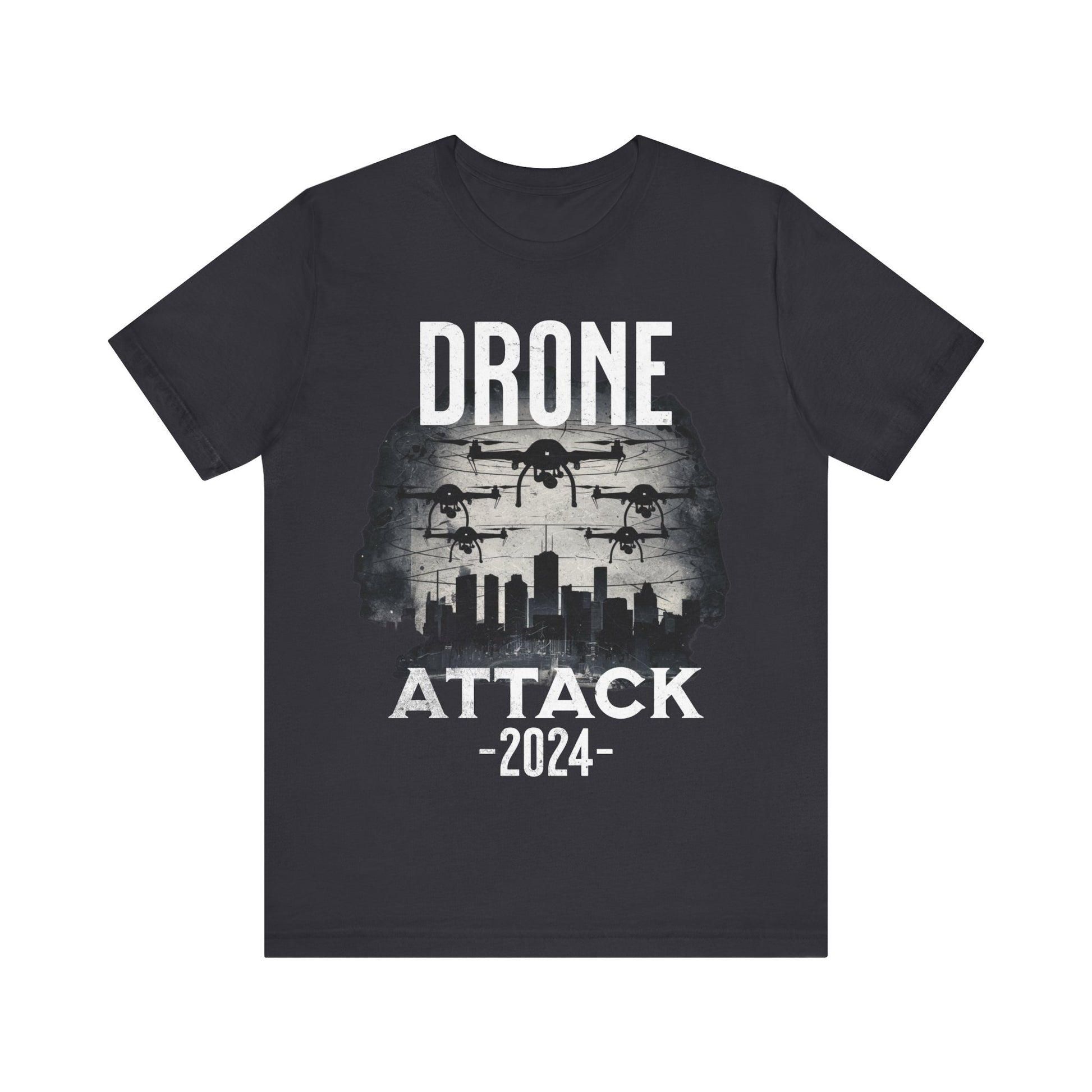 This Tee features a design inspired by the mysterious drone sightings in 2024. It provides a casual yet trendy look, perfect for those interested in futuristic events or conspiracy theories. Ideal for everyday wear or as a conversation starter at social gatherings. Relevant for sci-fi enthusiasts, conspiracy theorists, and those intrigued by unexplained phenomena. Great for events like UFO Day or Sci-Fi conventions.