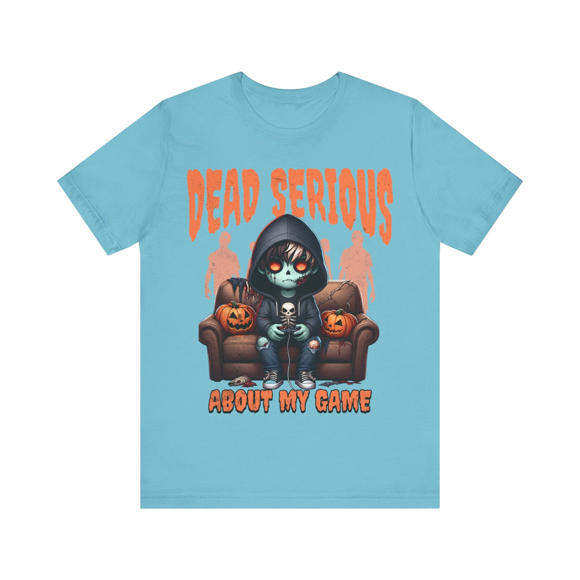 Get into the Halloween spirit with this adorable and quirky zombie gamer tee! Featuring a cute zombie character decked out in a cozy hoodie, intensely focused on their favorite game, this shirt perfectly blends Halloween vibes with gaming fun.