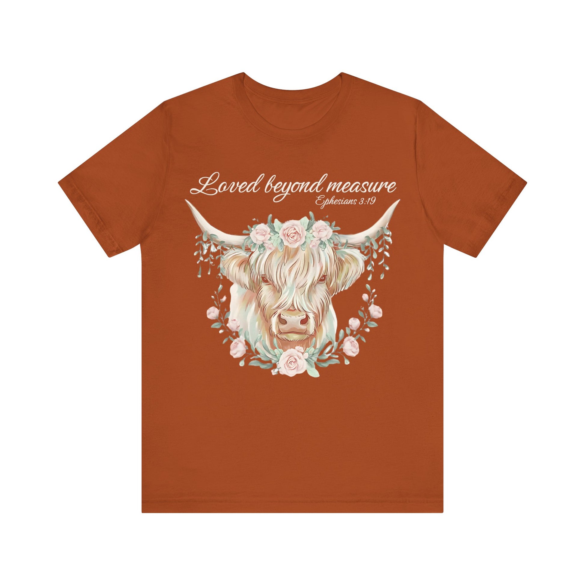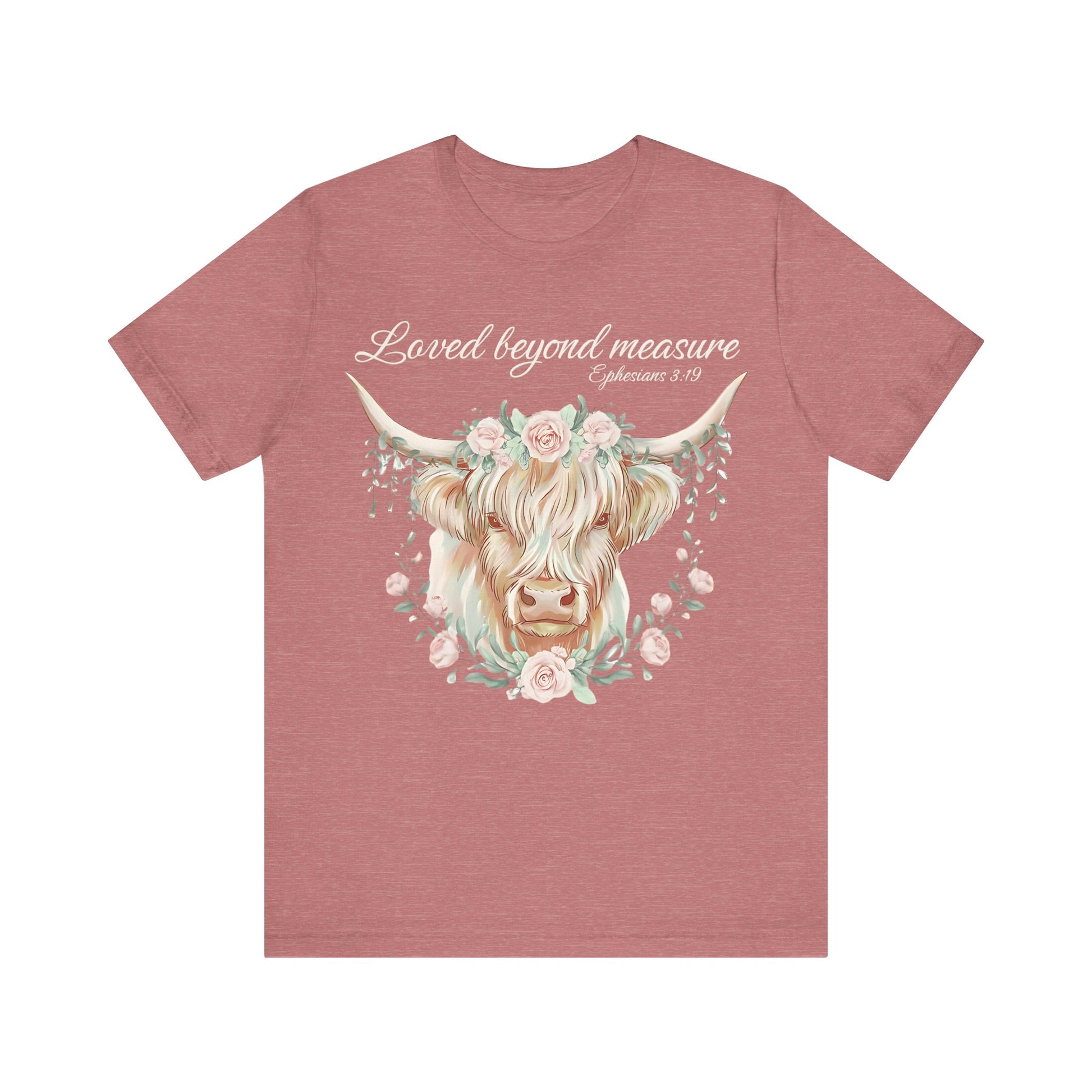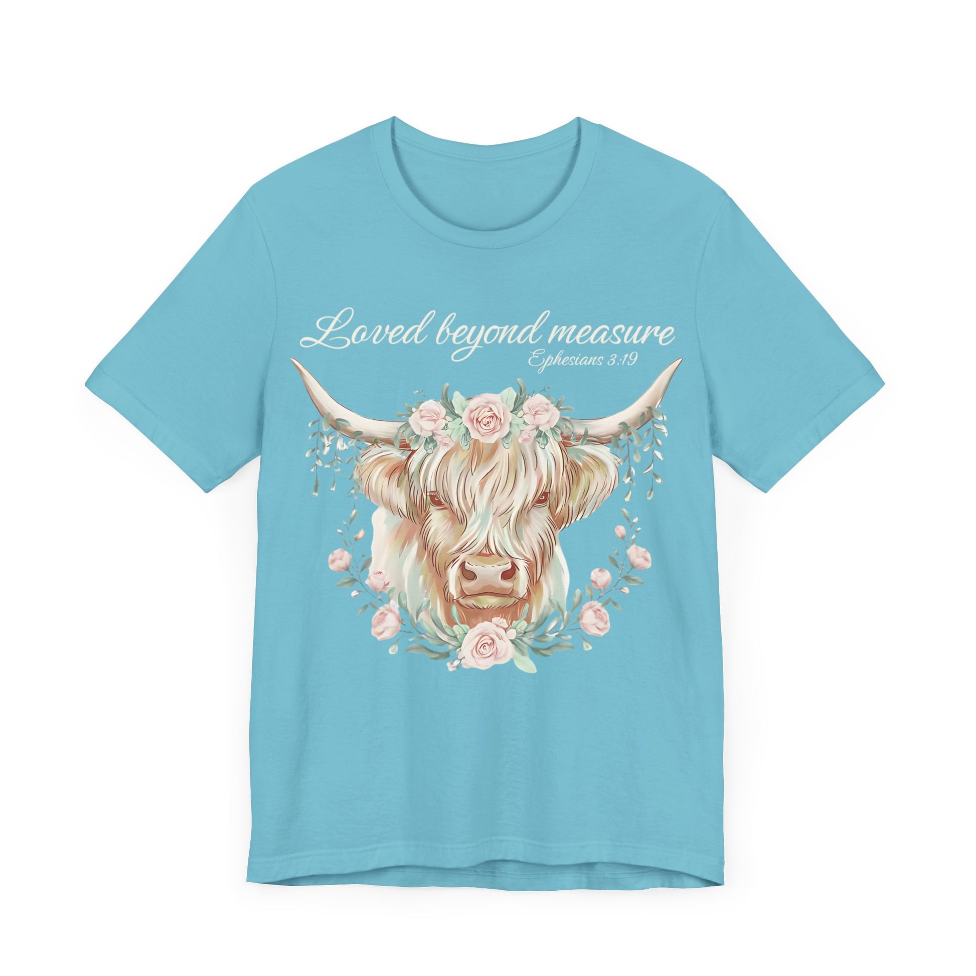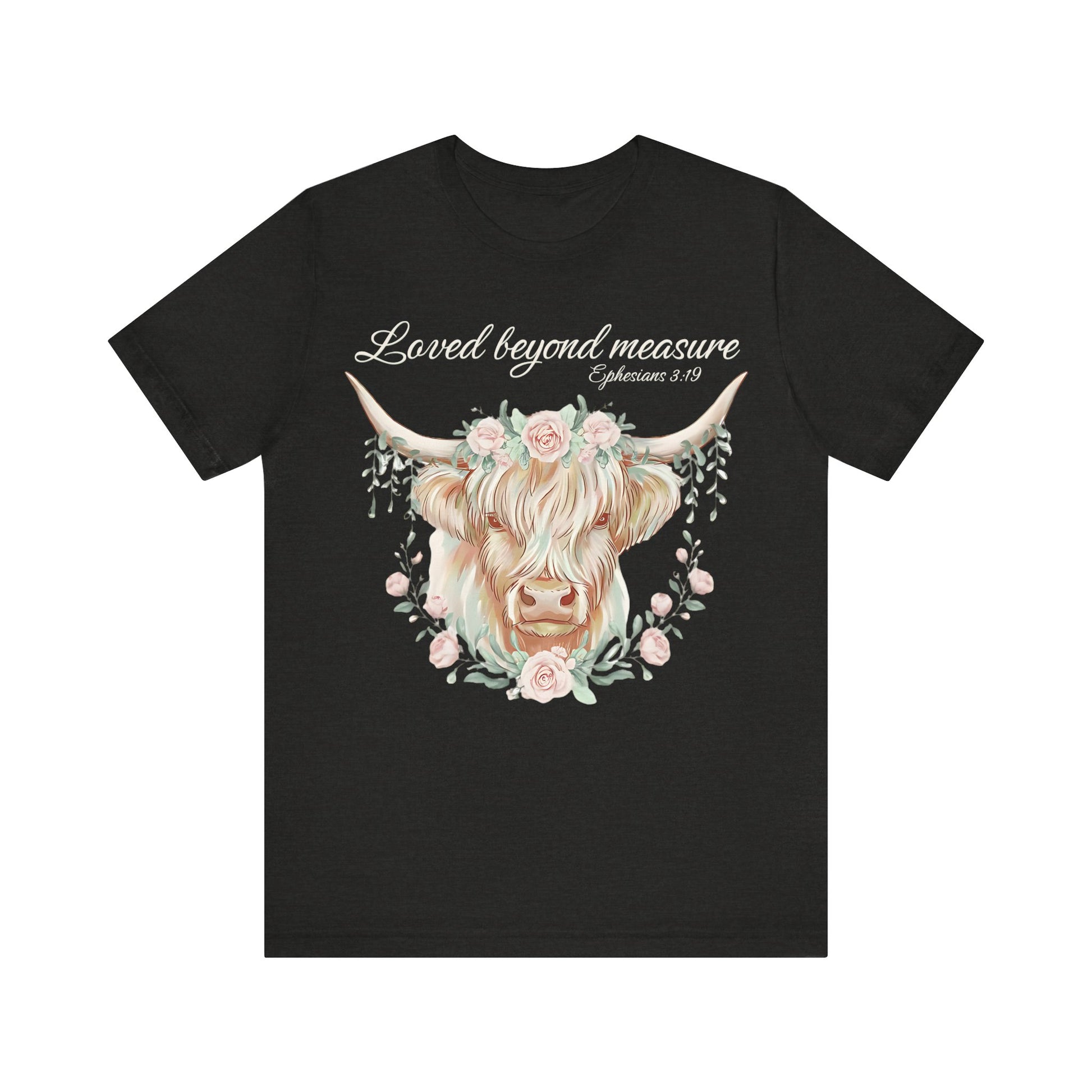 Highland Cow Unisex Tee - Loved Beyond Measure, Ephesians 3:19