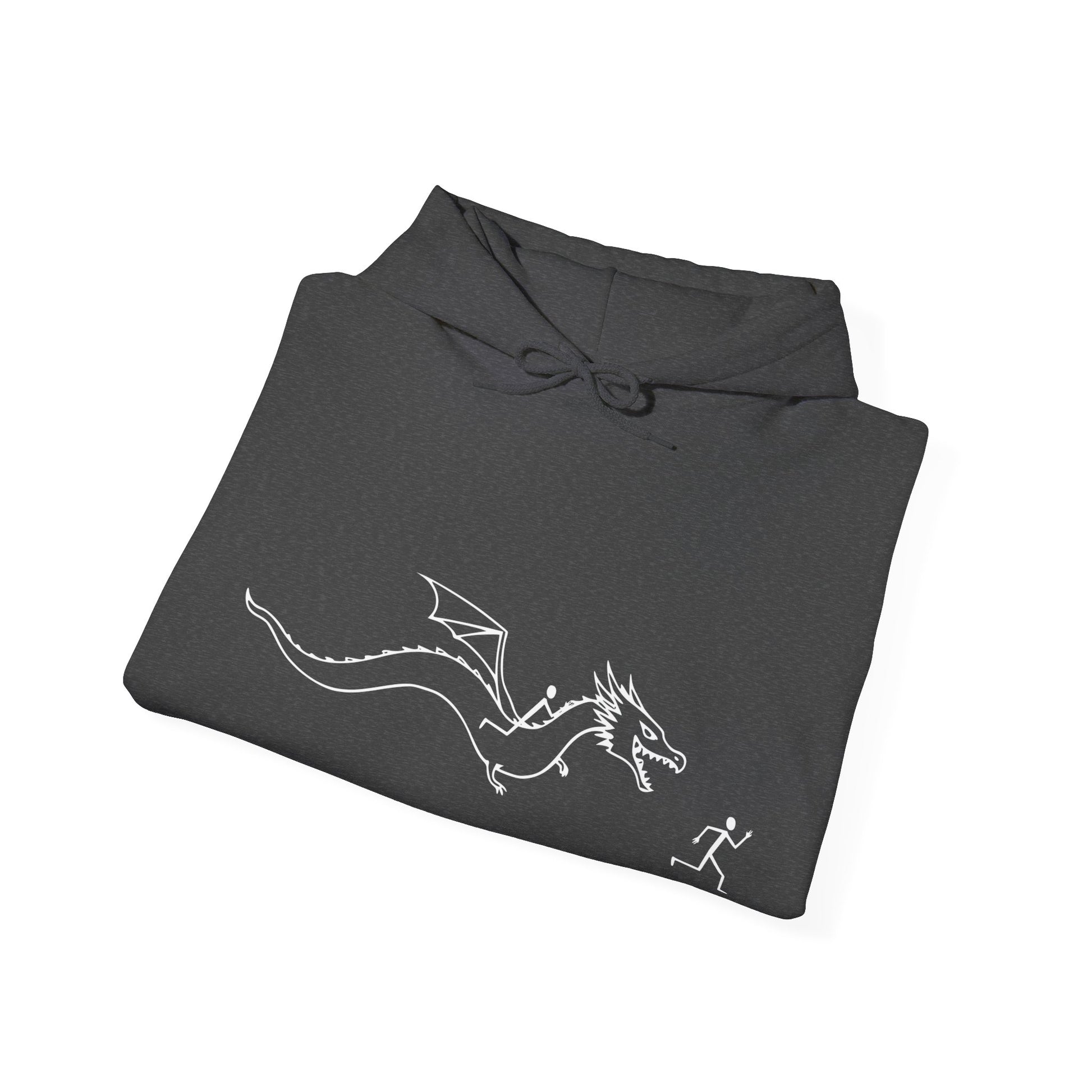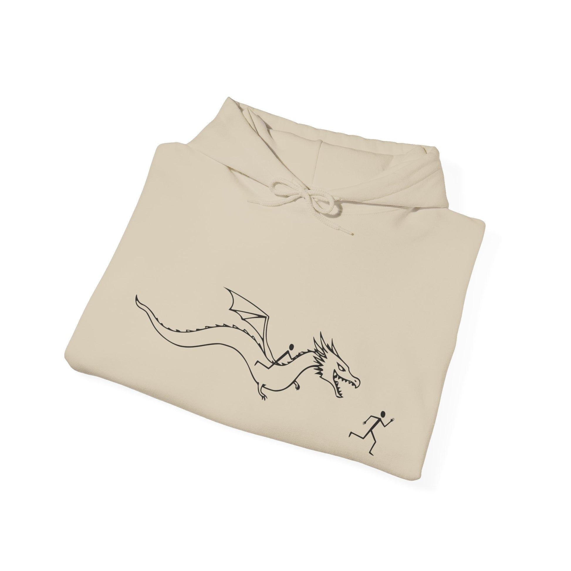 Hooded Sweatshirt - Stick figure Chased by Dragon Design