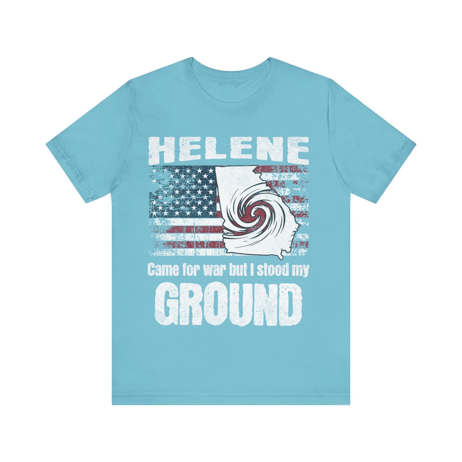 A hurricane T-Shirt for hurricane Helene that showcases bravery and resilience. This shirt gives off a strong and determined vibe, perfect for those who have faced challenges head-on. It is relevant for individuals who have overcome obstacles and want to celebrate their strength. Ideal for wearing on casual days, gatherings, or as a statement piece during empowerment events.