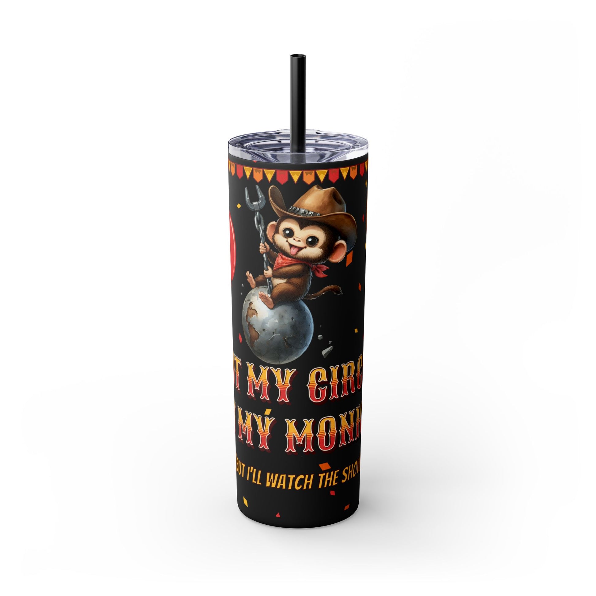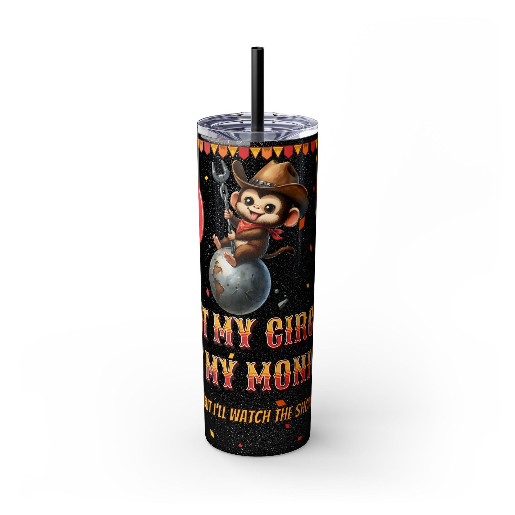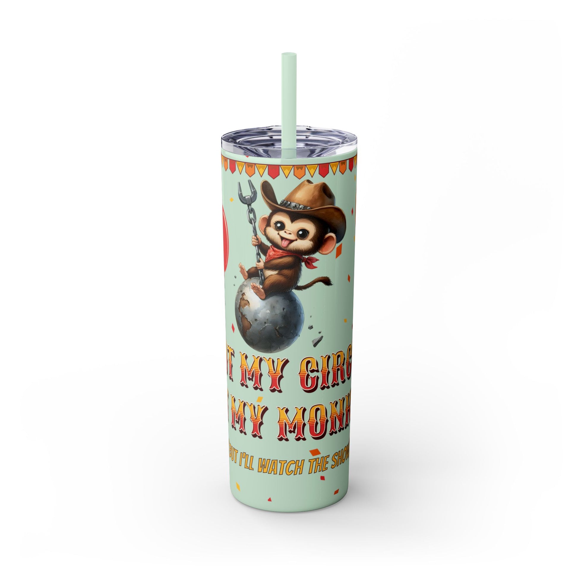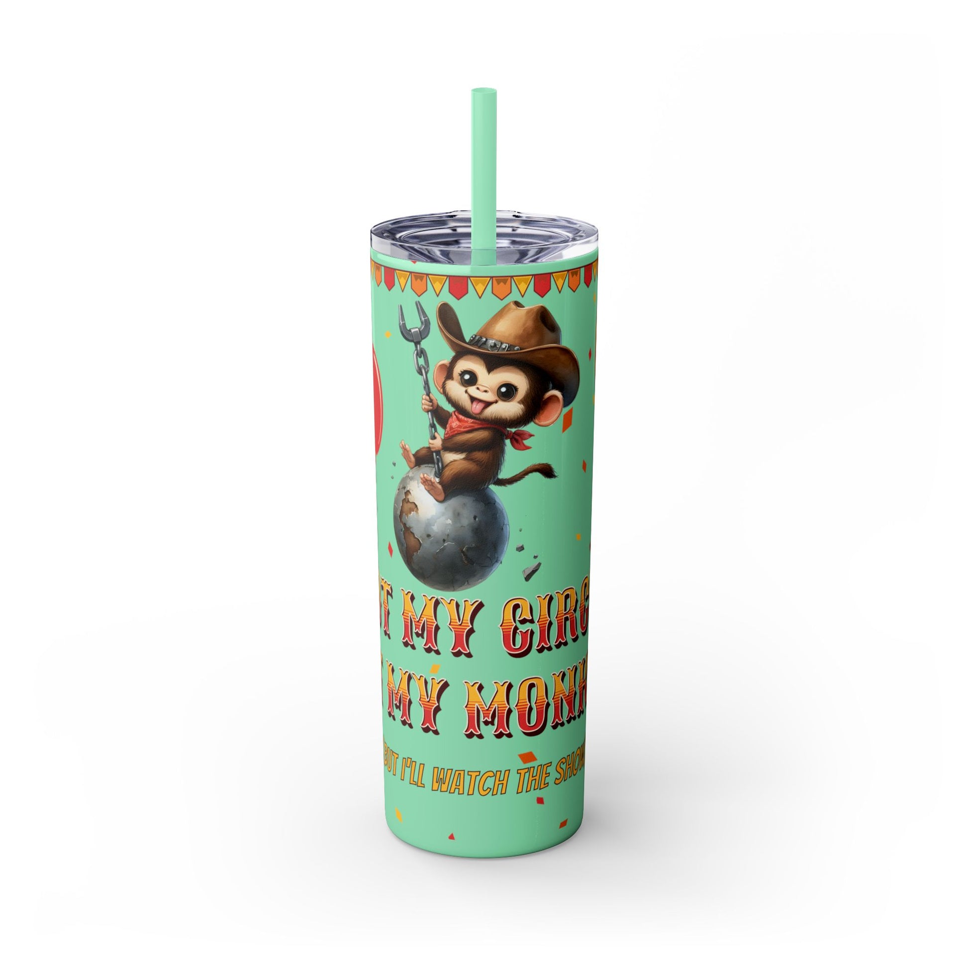Not my circus Tumbler with Straw - 20oz - Fun Monkey & Balloon Design
