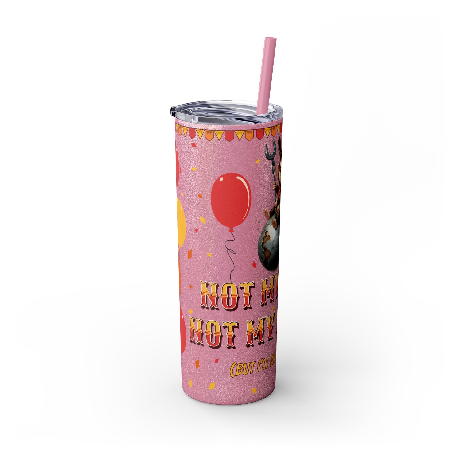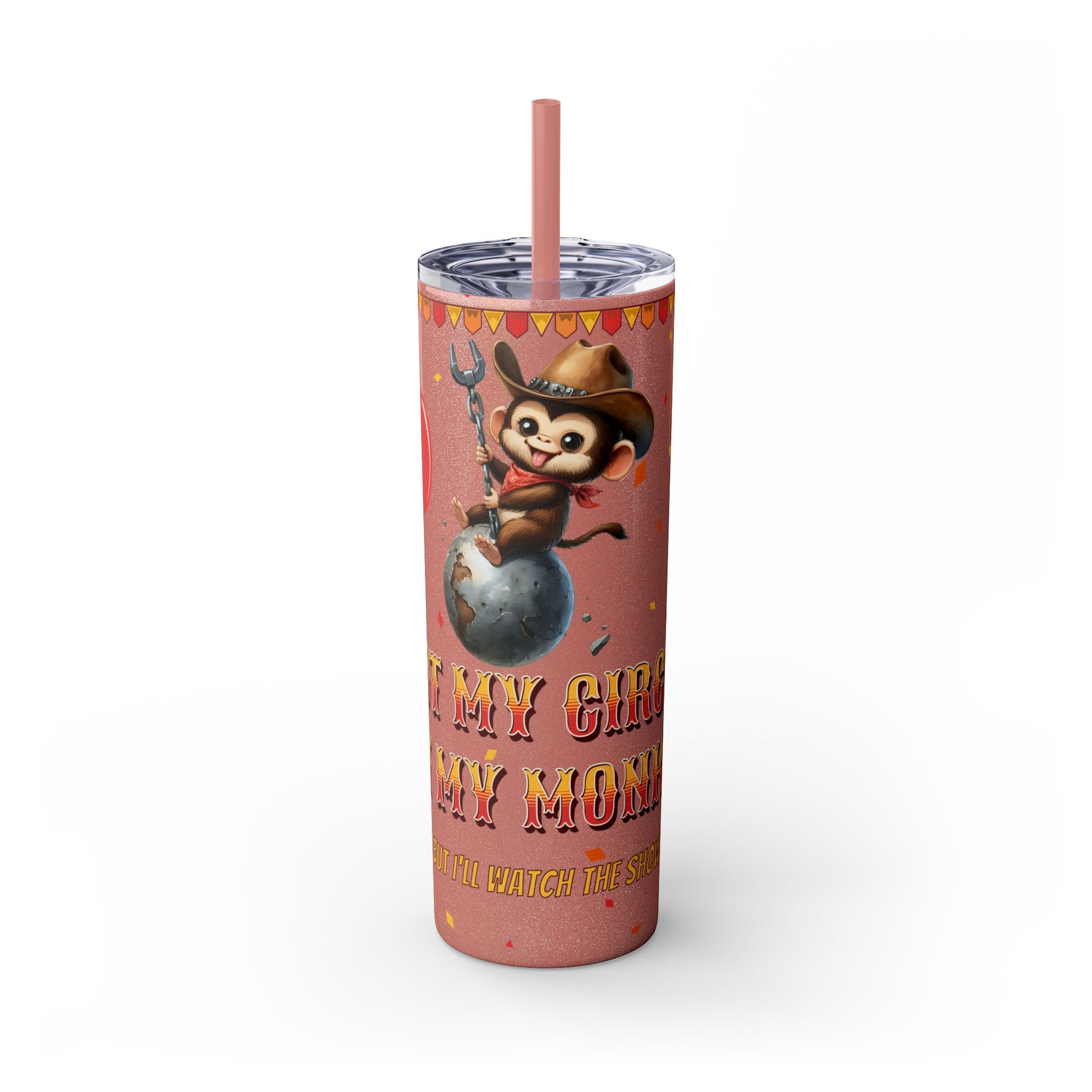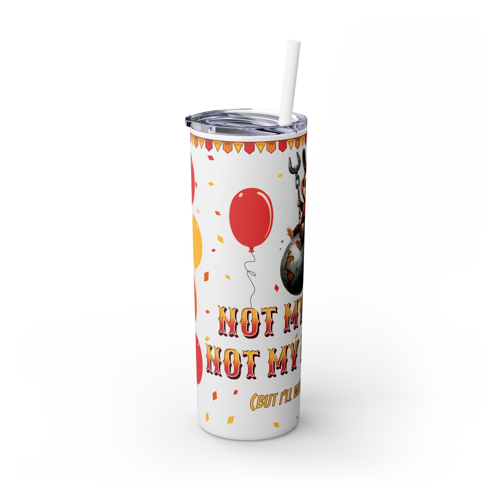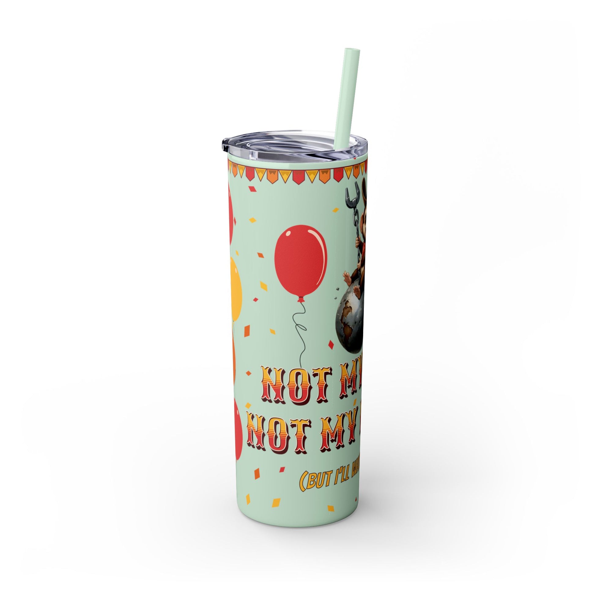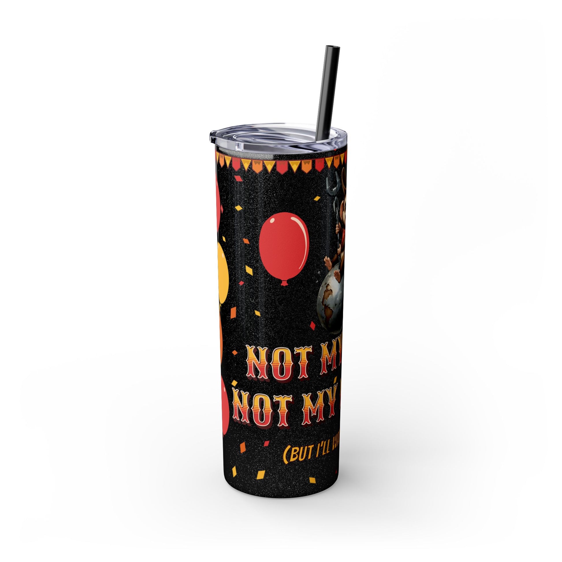 Not my circus Tumbler with Straw - 20oz - Fun Monkey & Balloon Design