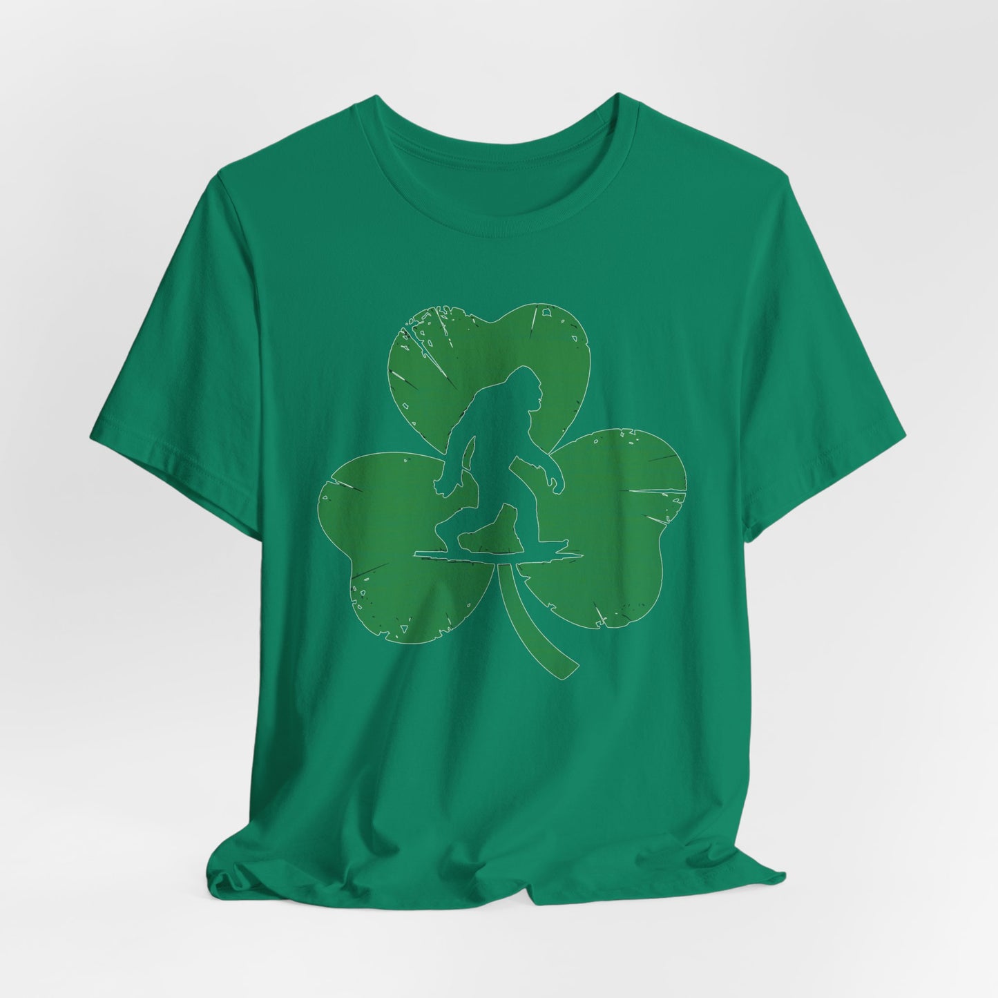 Shamrock Bigfoot Tee, St Patrick's Day Shirt, Lucky Clover T-Shirt, Unisex Graphic Top, Sasquatch Irish Tee, bigfoot tee,irish shirt,