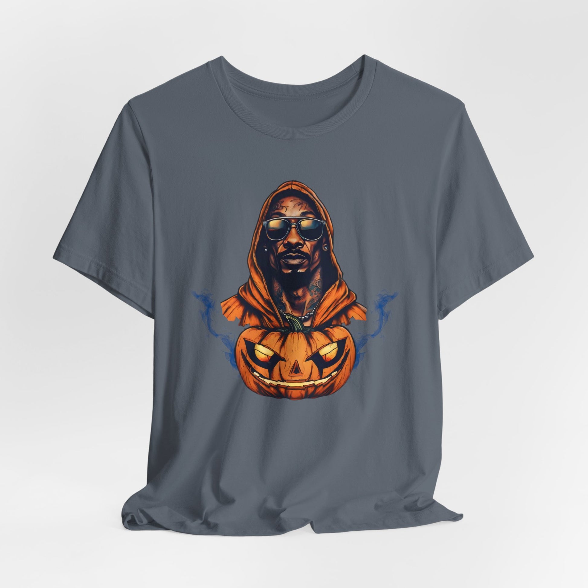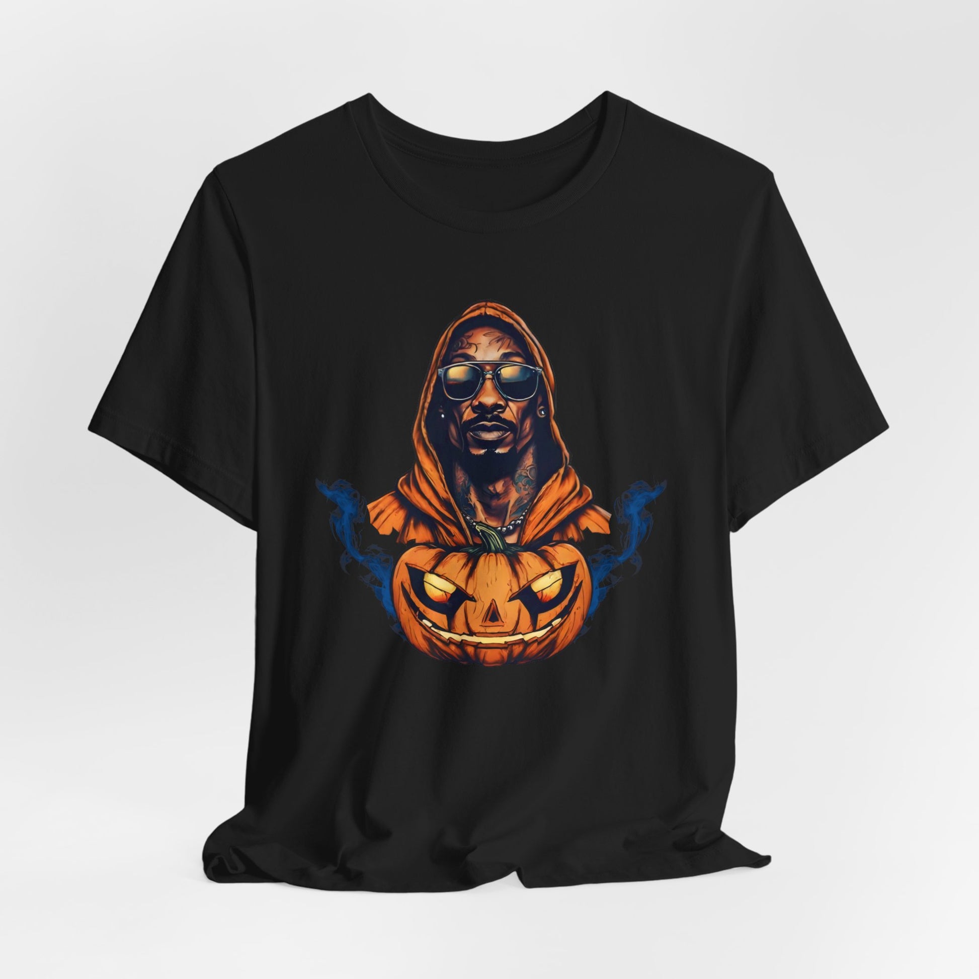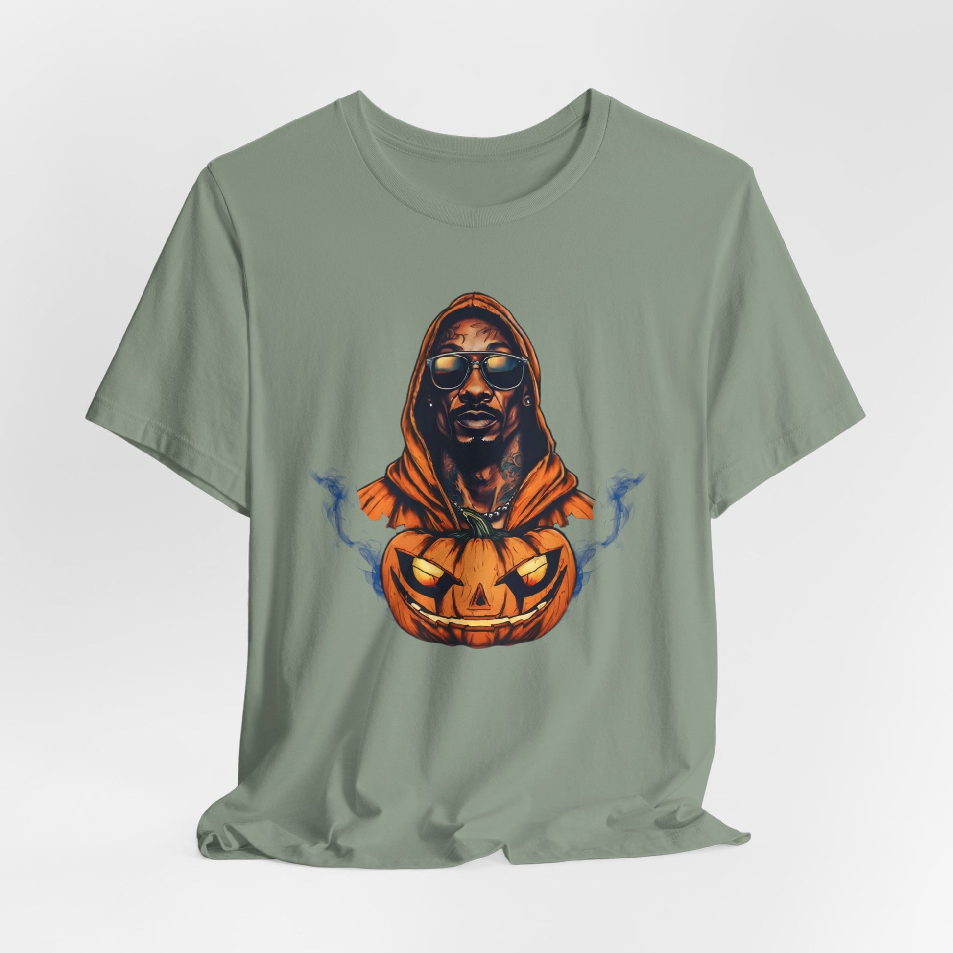 Elevate your Halloween style with this edgy and unique graphic tee, where street vibes meet spooky season! The shirt showcases a striking design of a cool, confident figure in a hoodie, rocking sunglasses and a no-nonsense expression. In front of him is a menacingly grinning jack-o'-lantern, surrounded by eerie blue ghostly wisps. This mashup of urban cool and Halloween flair makes for a standout piece that's perfect for anyone looking to celebrate the season with a little extra attitude. Whether you're out trick-or-treating or just hanging with friends, this shirt is sure to turn heads.