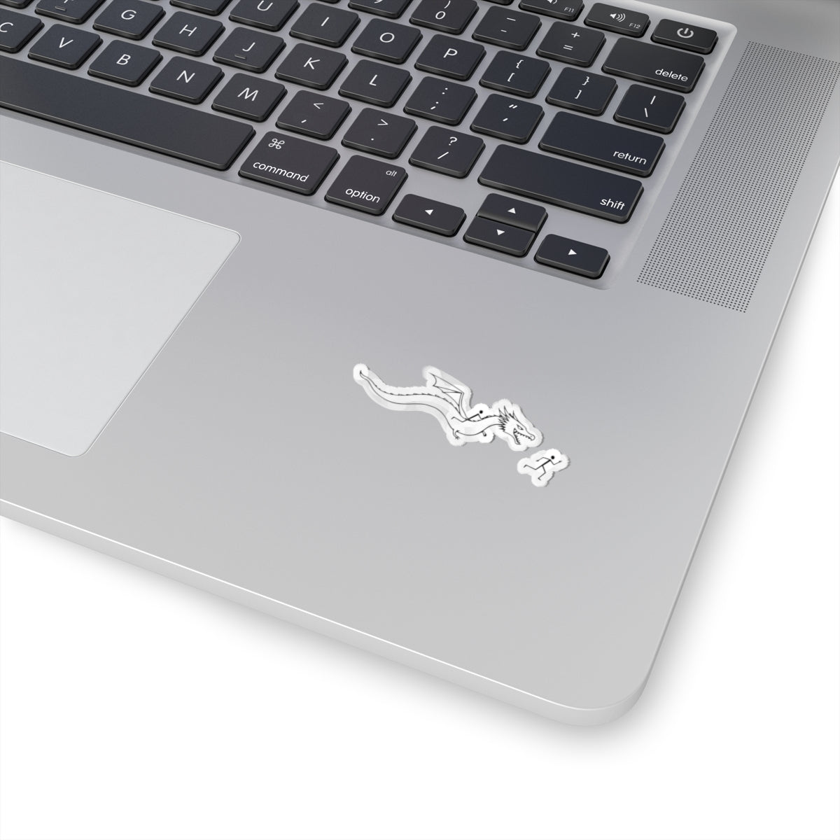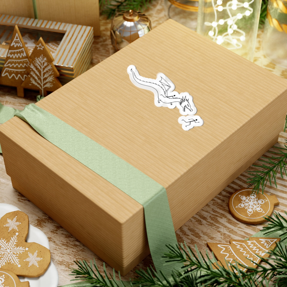 Vibrant and playful stickers featuring a dragon chasing a stick figure. Perfect for adding a touch of whimsy to laptops, journals, and windows. Ideal for kids, fantasy lovers, and those looking to showcase their unique style. Great for birthdays, back-to-school, and everyday decoration.