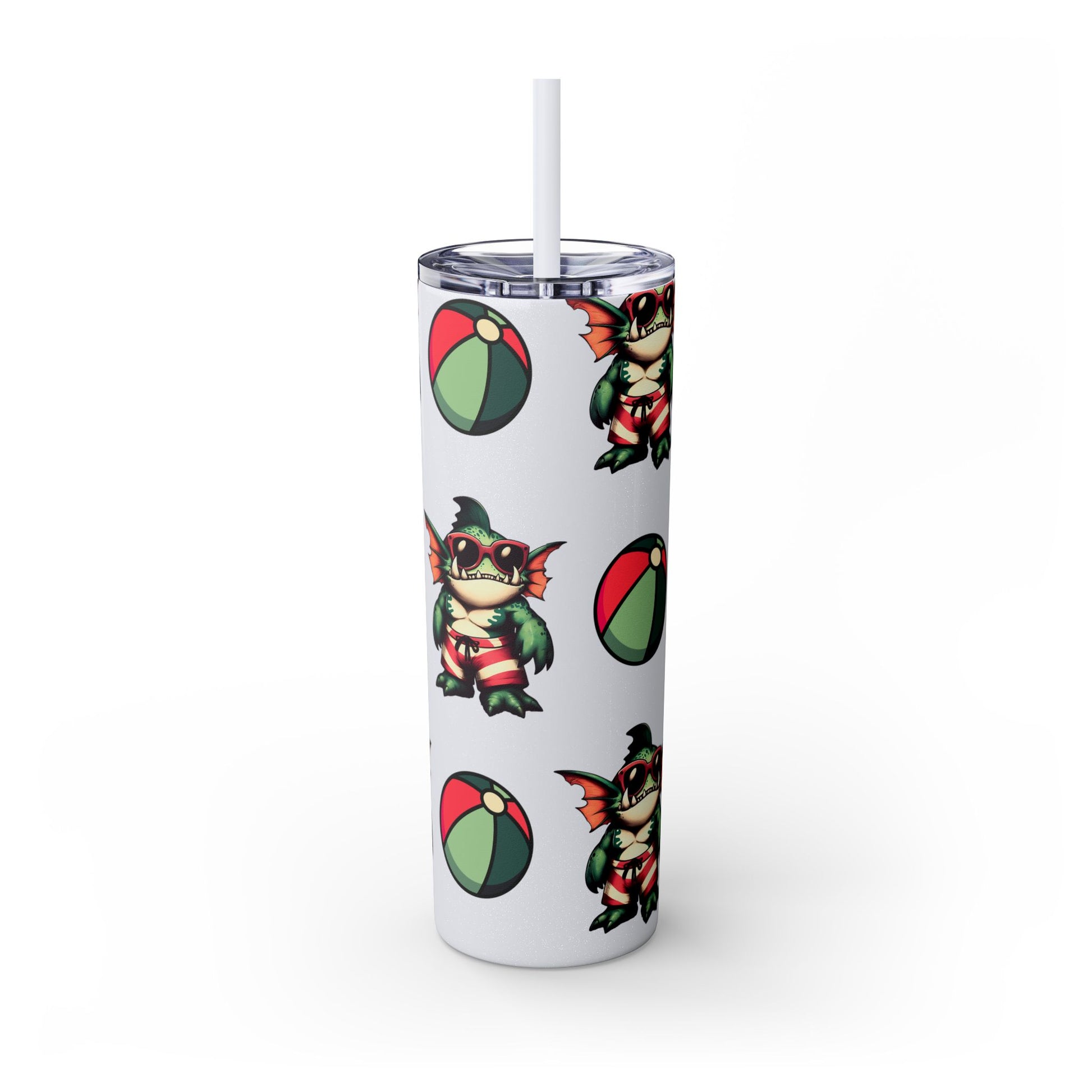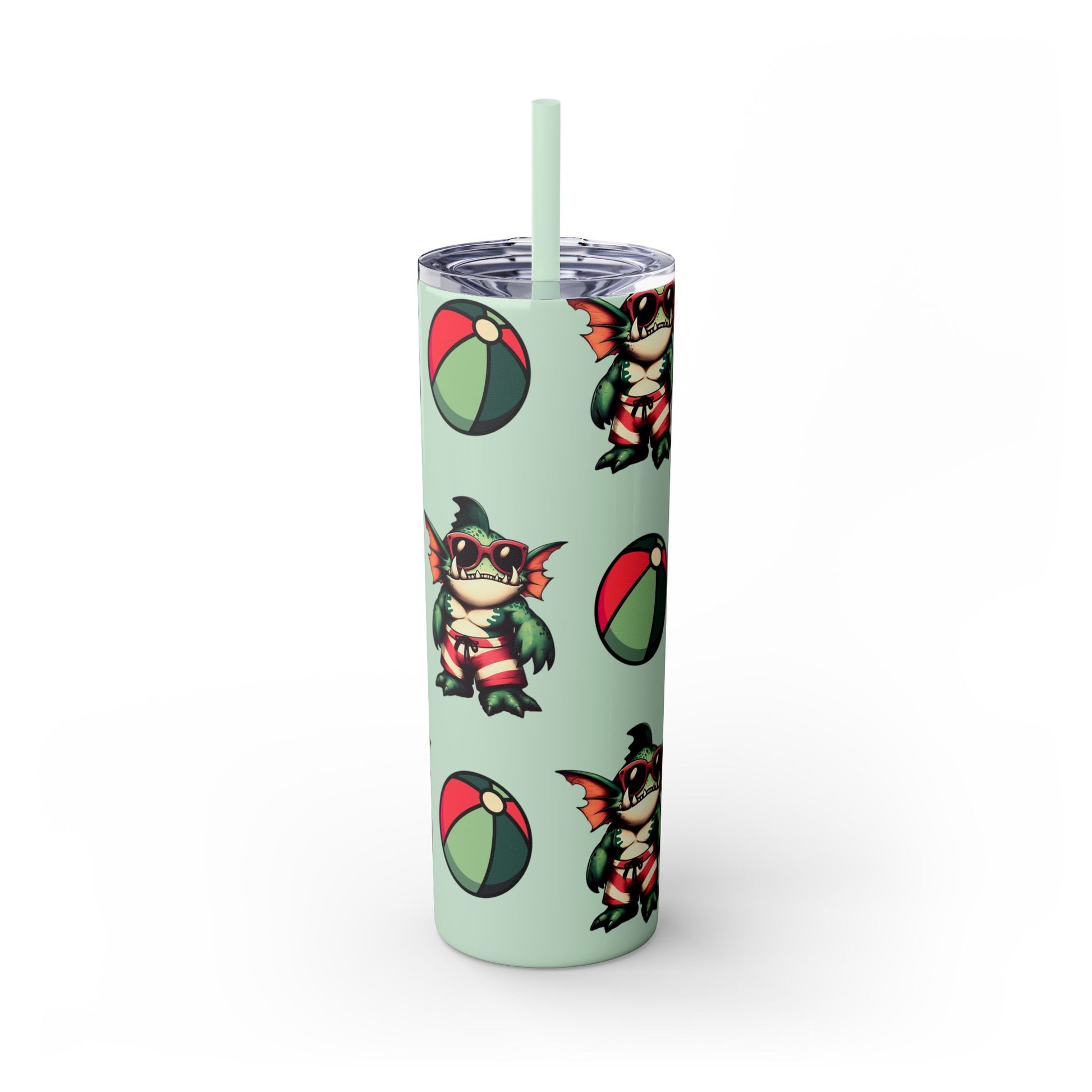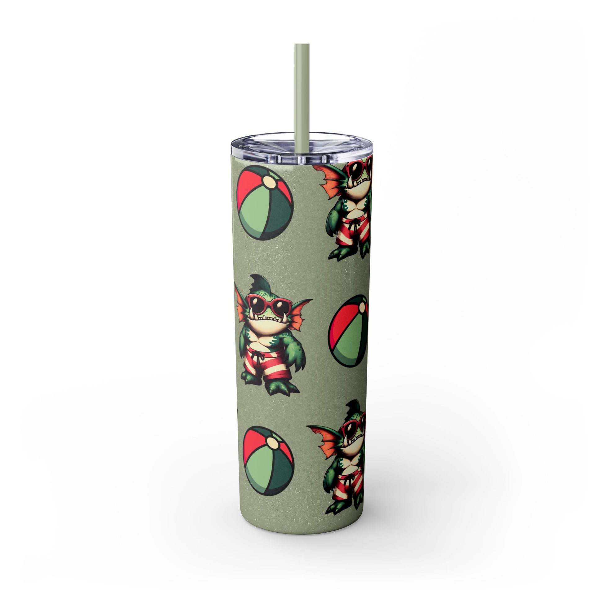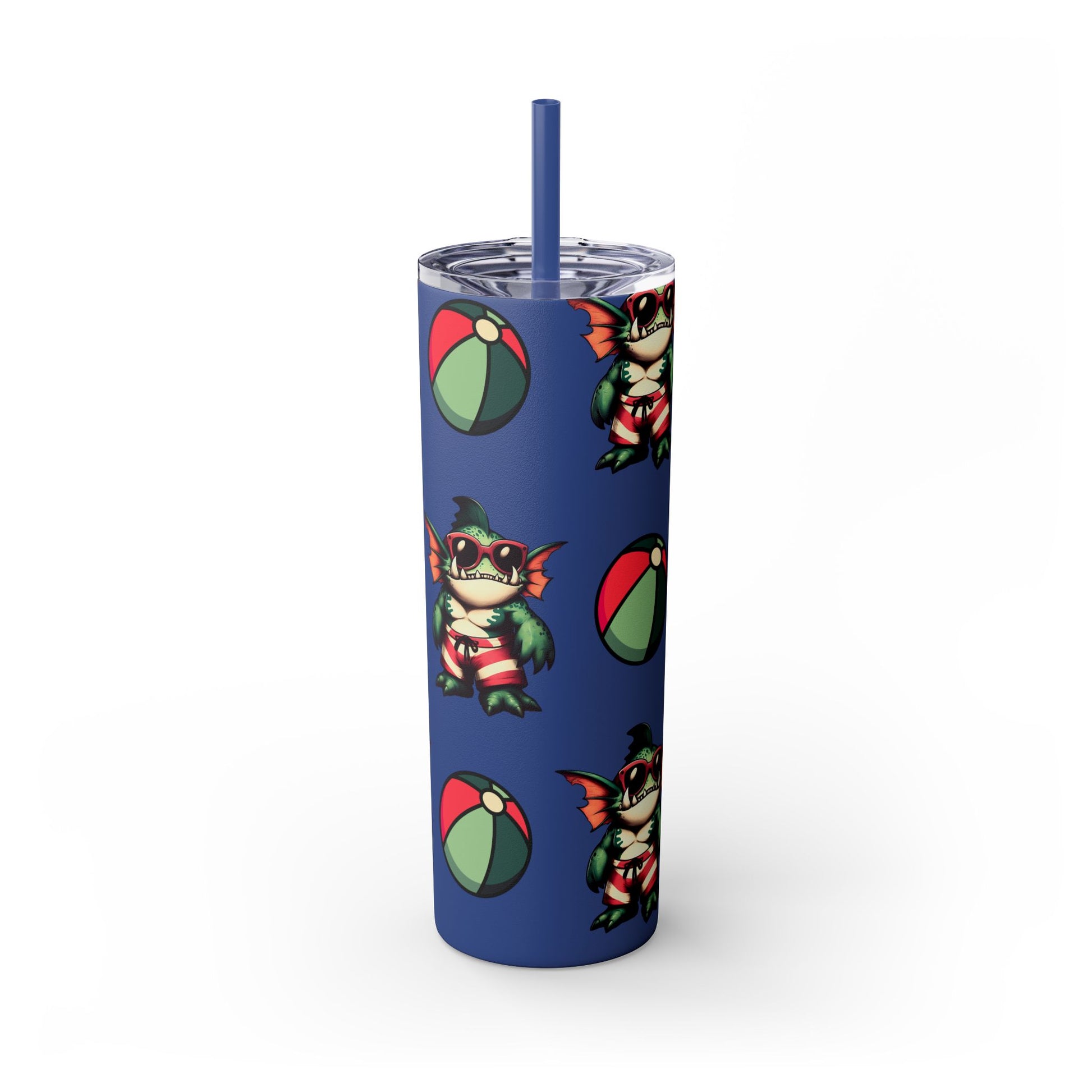 A sleek and modern skinny tumbler with a straw featuring a design of a beach lizard. Perfect for beachgoers and reptile lovers, this tumbler is great for keeping drinks cold for up to 24 hours or hot for up to 12 hours. Ideal for summer outings, beach vacations, and tropical-themed parties.