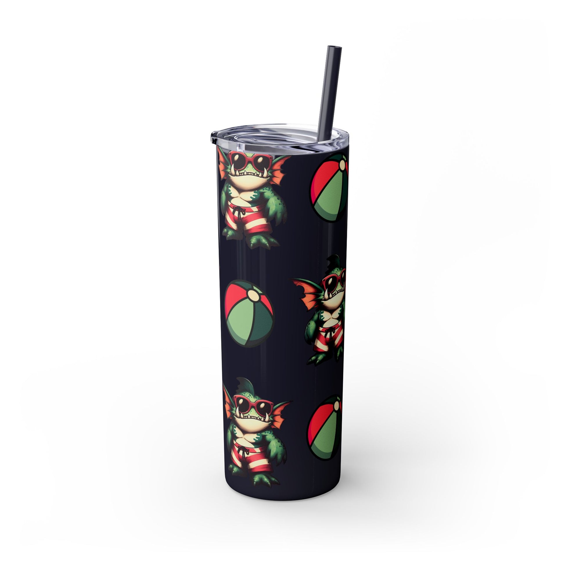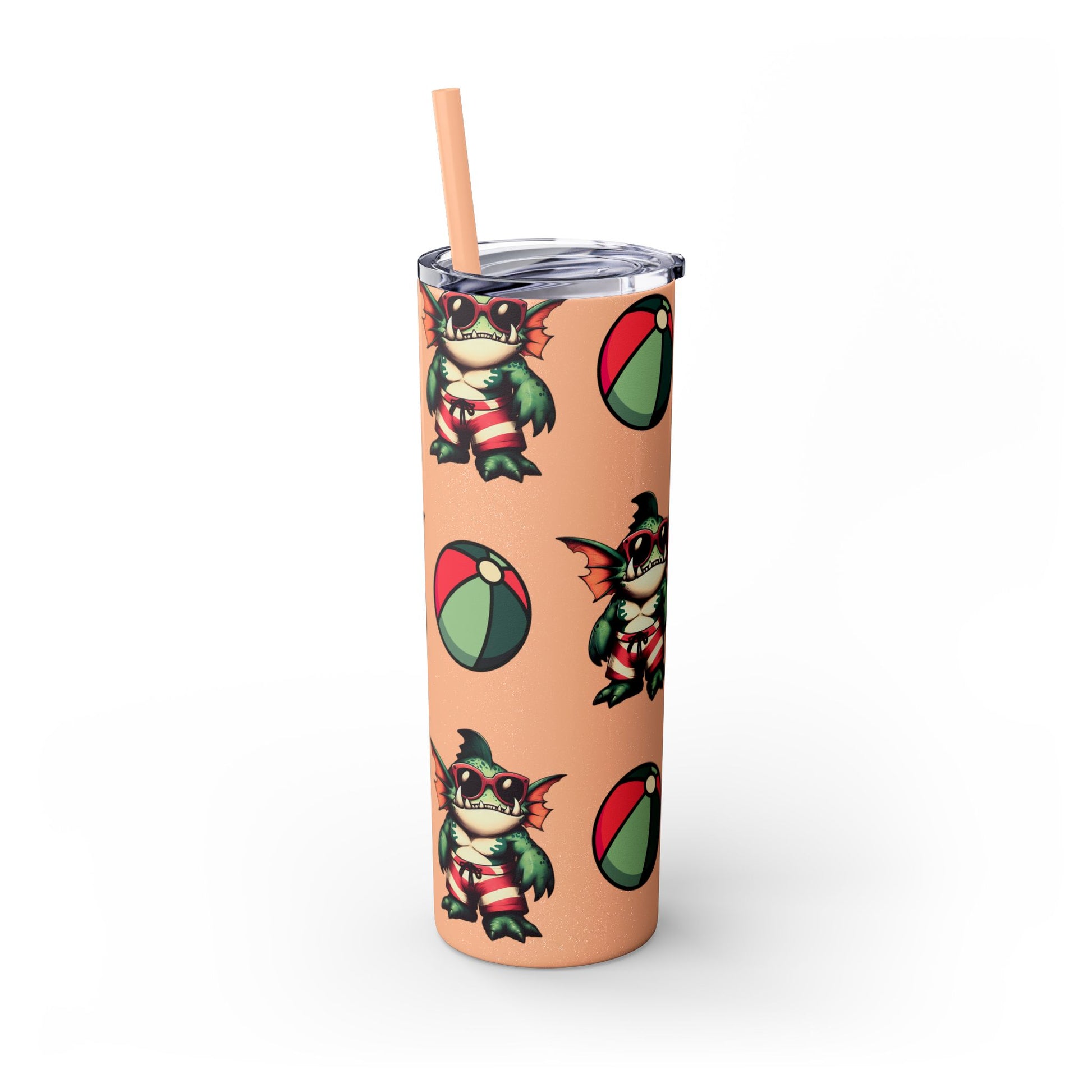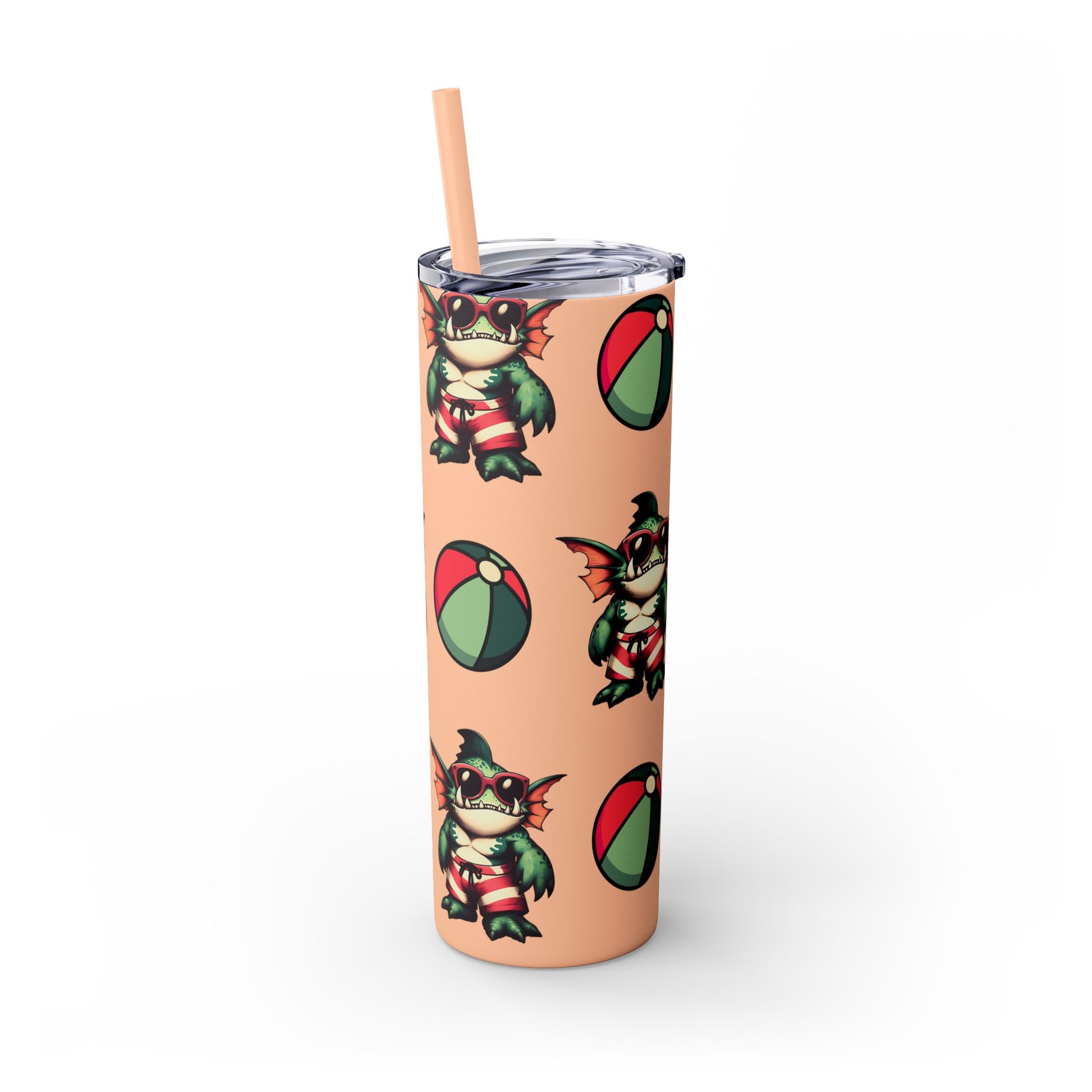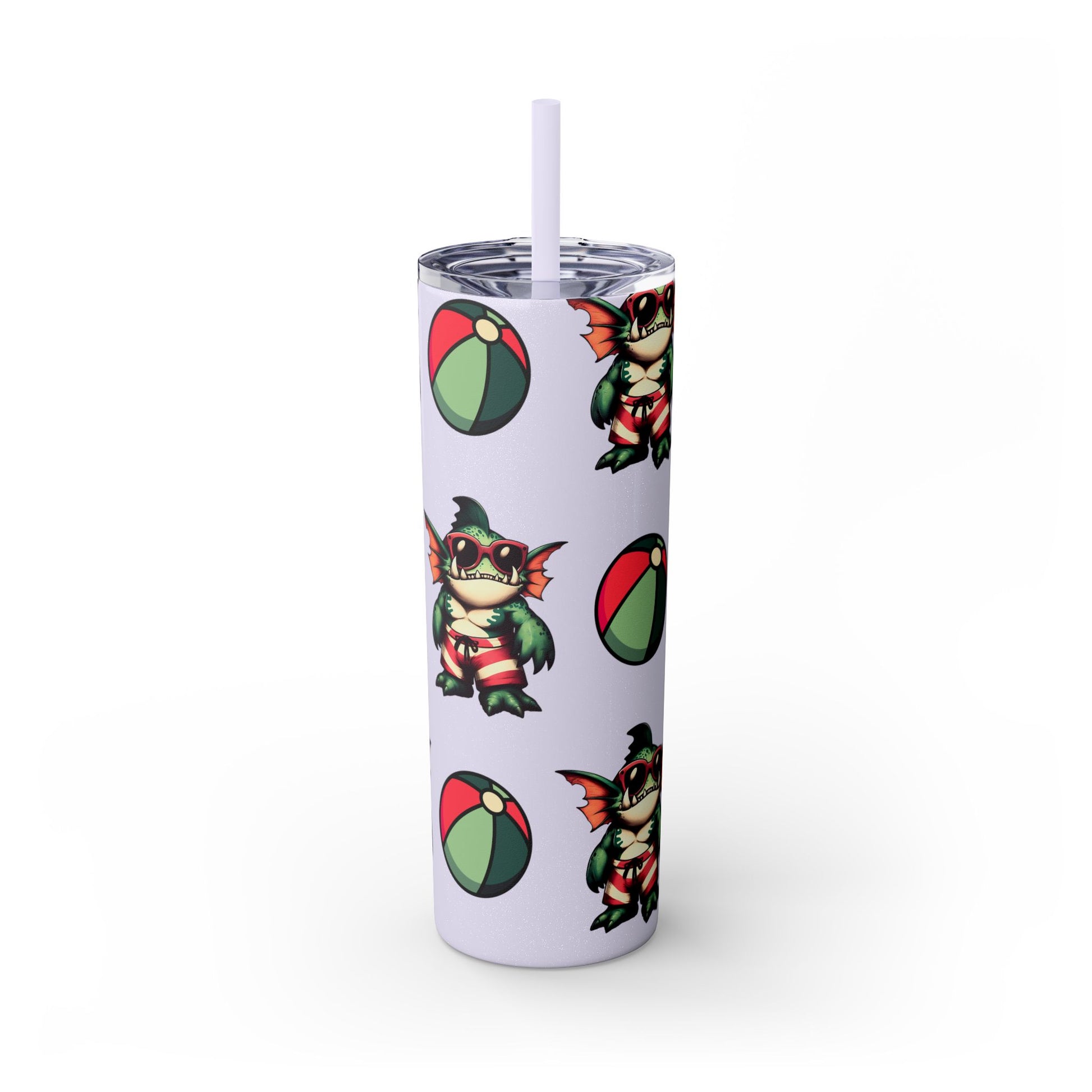 A sleek and modern skinny tumbler with a straw featuring a design of a beach lizard. Perfect for beachgoers and reptile lovers, this tumbler is great for keeping drinks cold for up to 24 hours or hot for up to 12 hours. Ideal for summer outings, beach vacations, and tropical-themed parties.