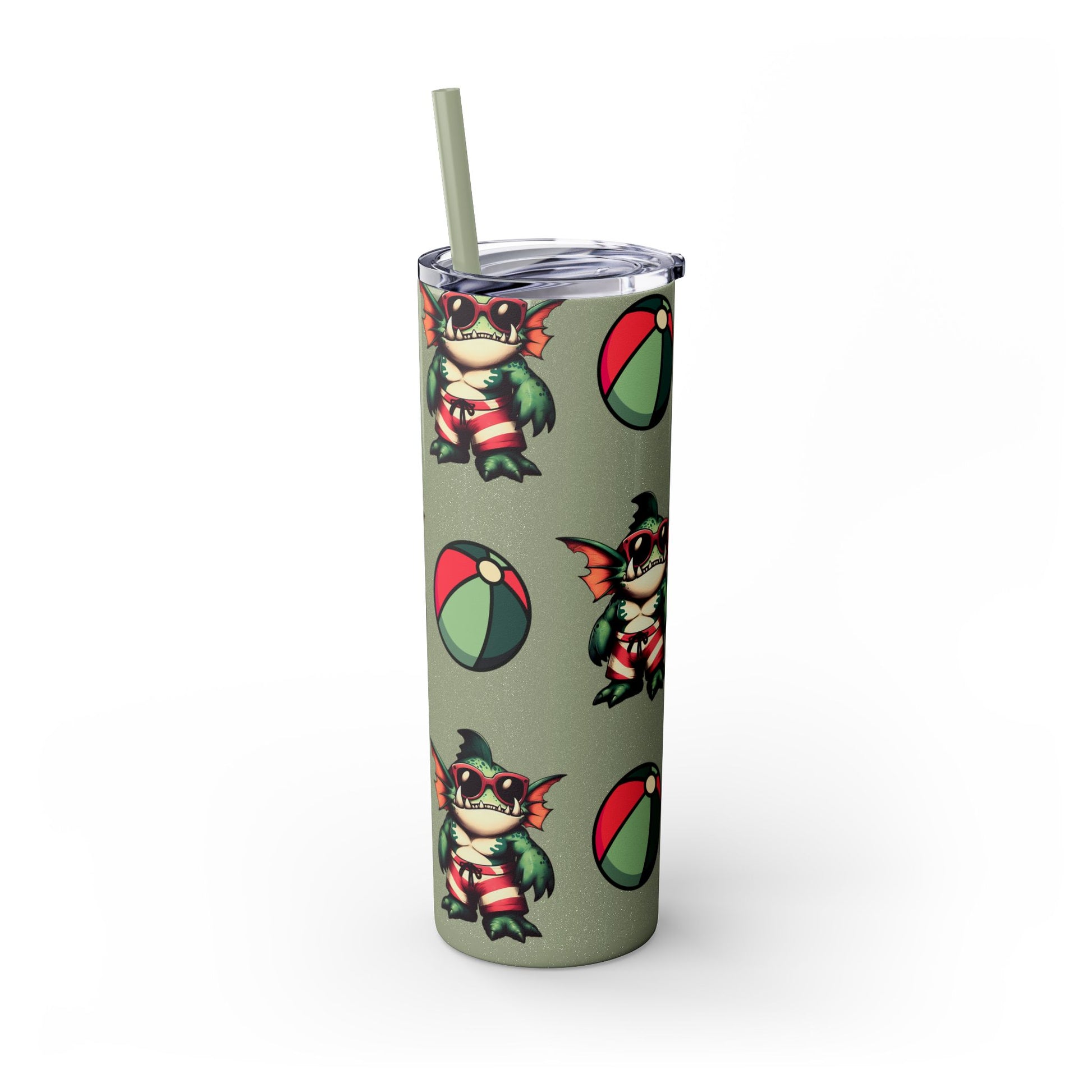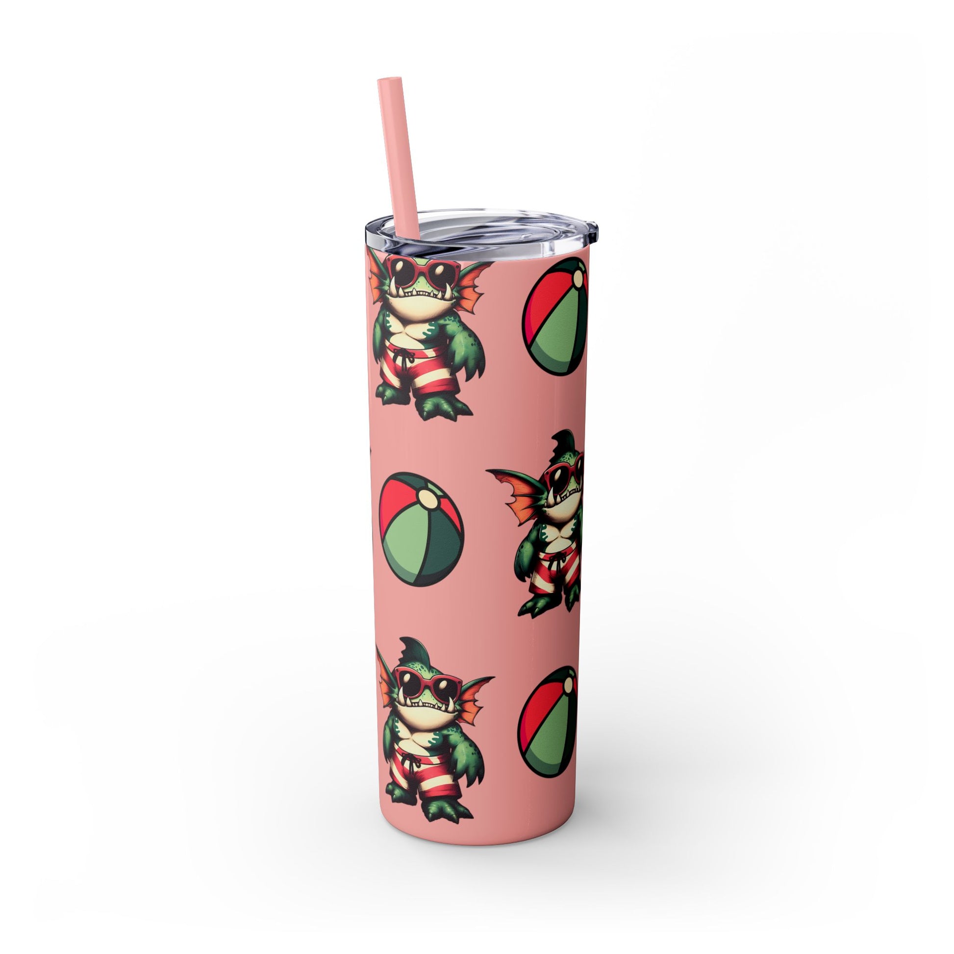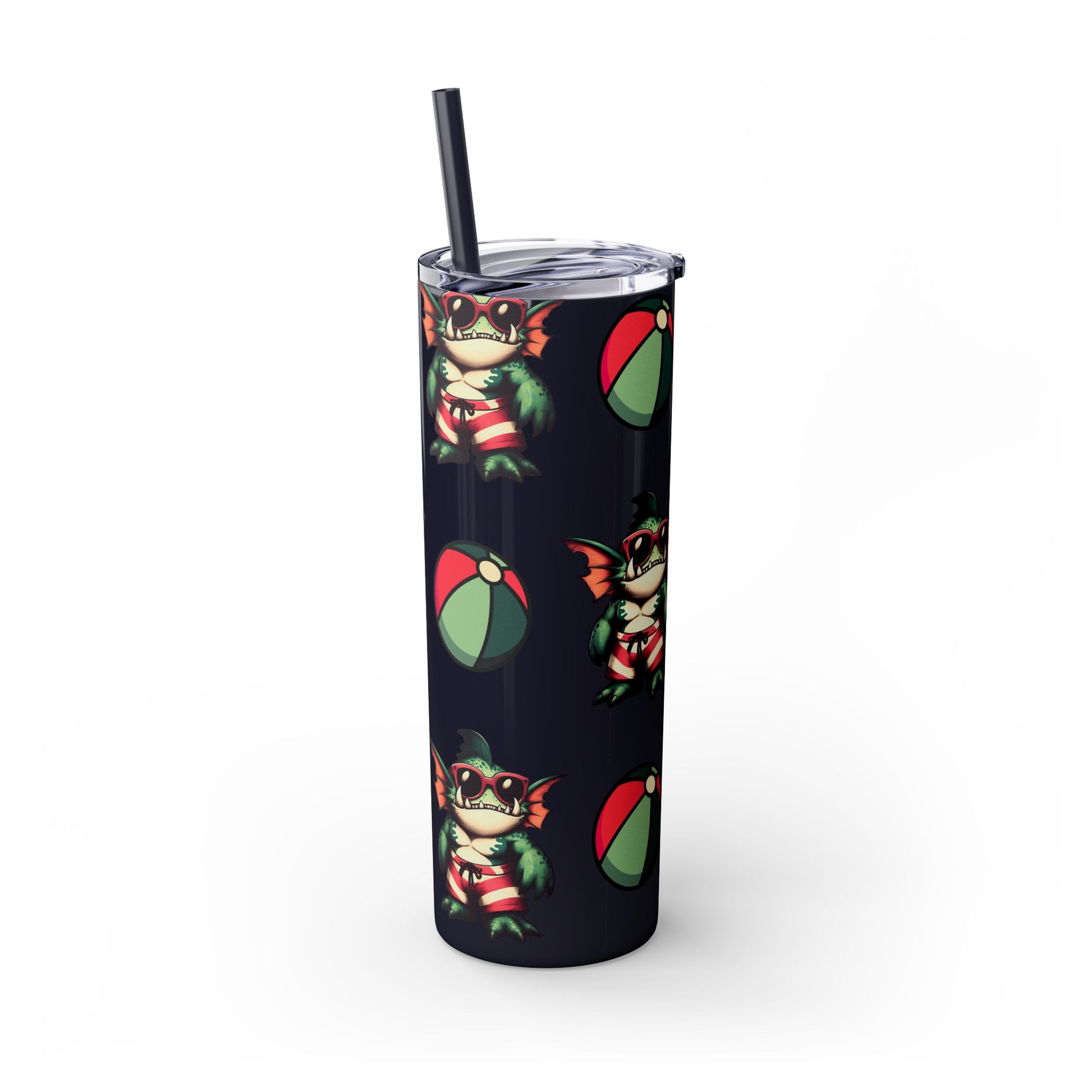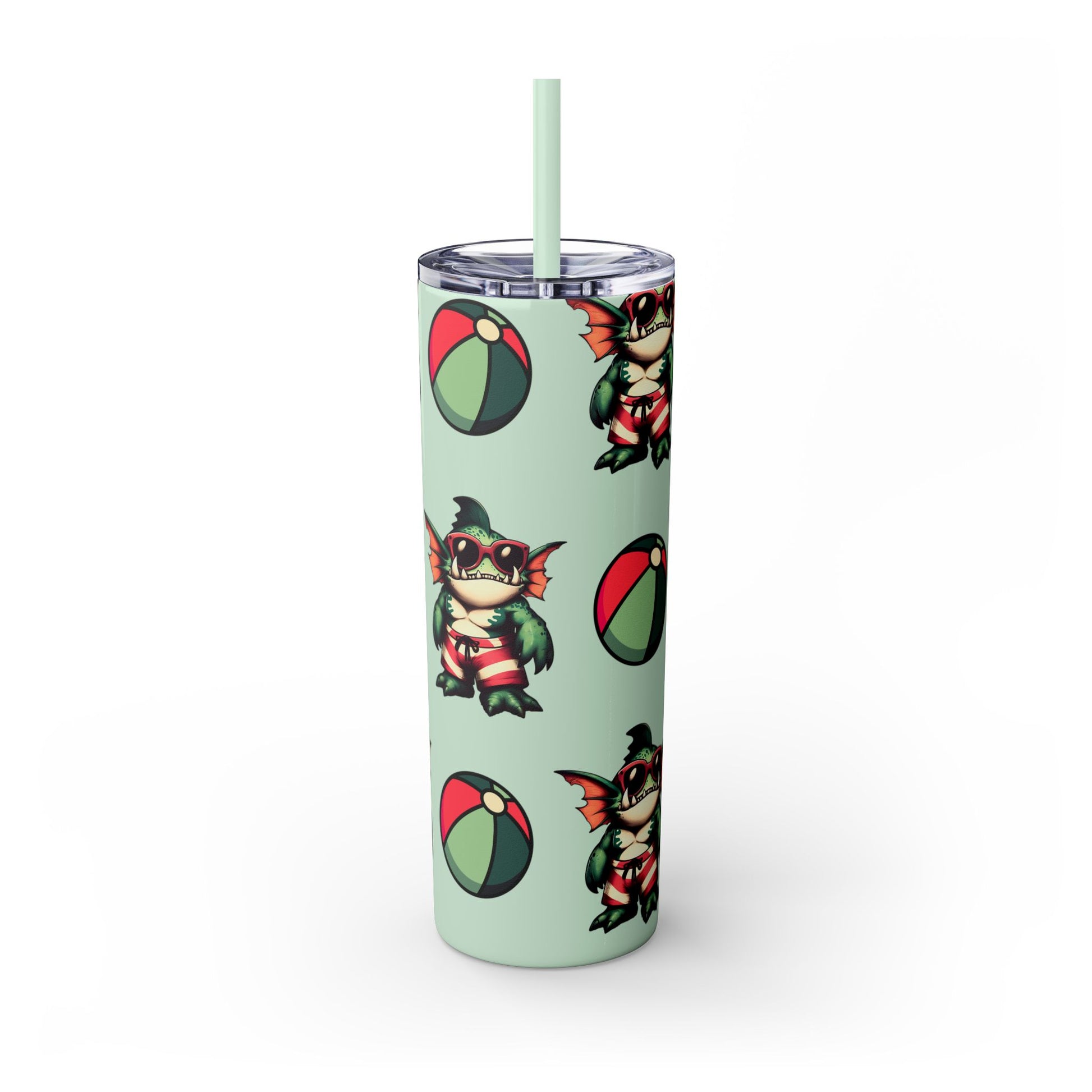 A sleek and modern skinny tumbler with a straw featuring a design of a beach lizard. Perfect for beachgoers and reptile lovers, this tumbler is great for keeping drinks cold for up to 24 hours or hot for up to 12 hours. Ideal for summer outings, beach vacations, and tropical-themed parties.