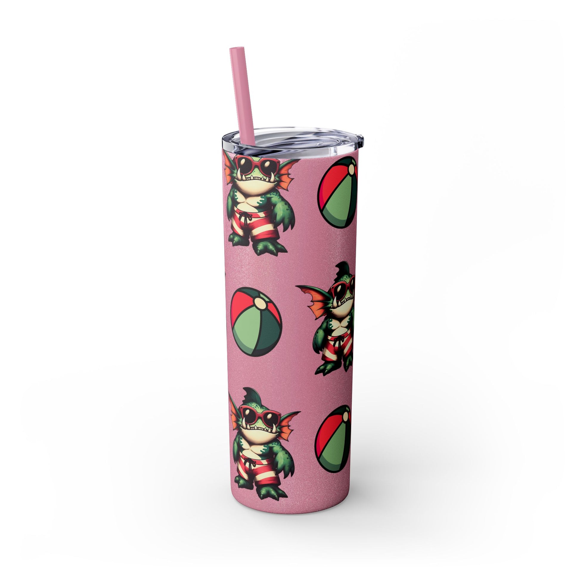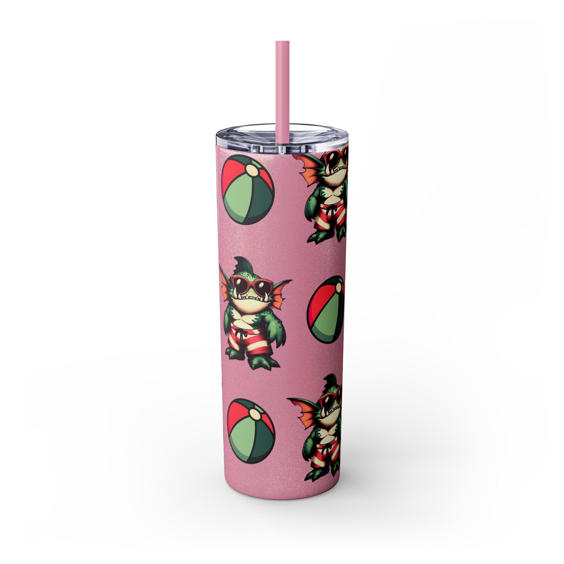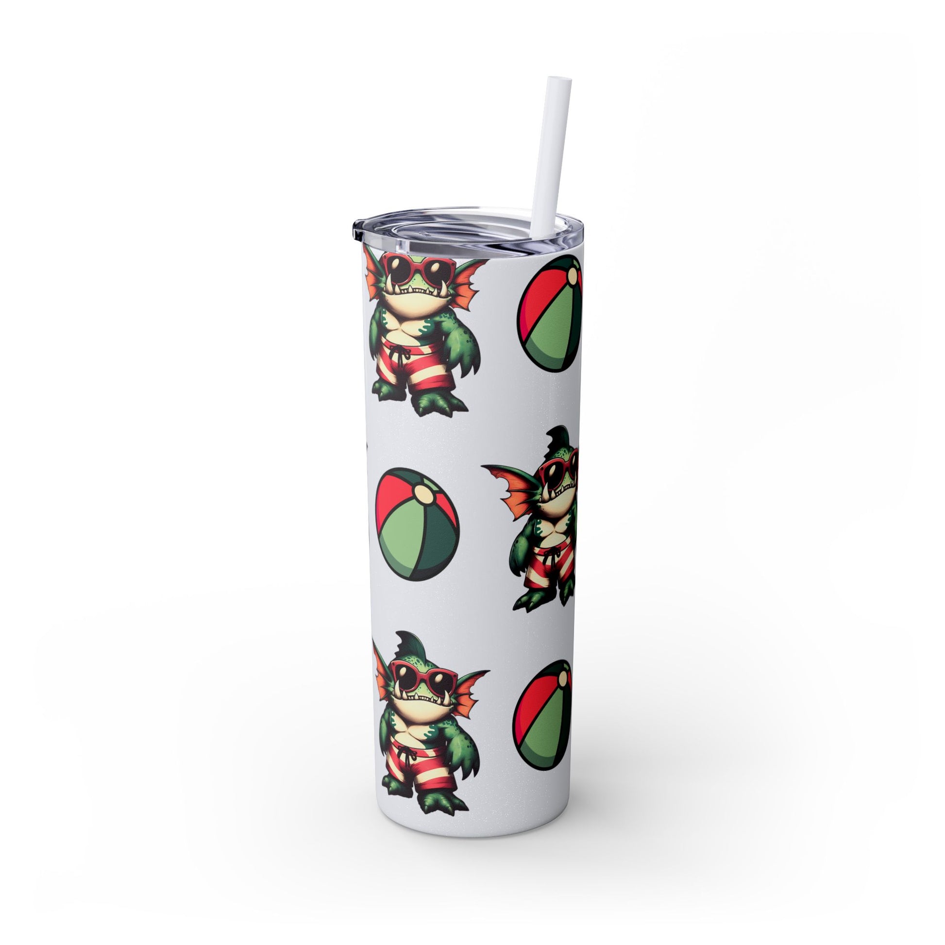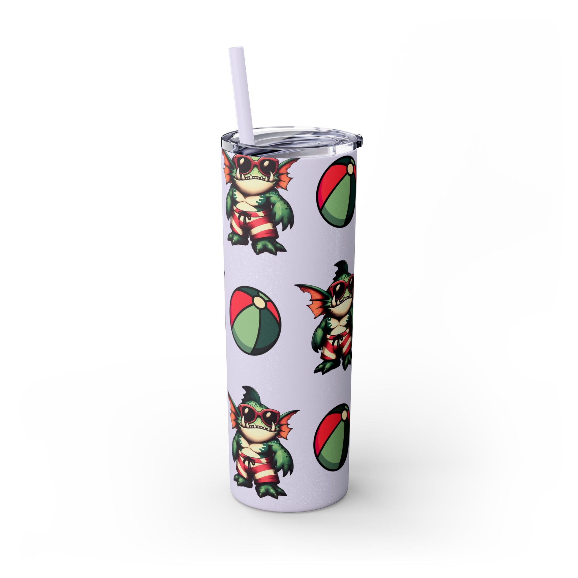 A sleek and modern skinny tumbler with a straw featuring a design of a beach lizard. Perfect for beachgoers and reptile lovers, this tumbler is great for keeping drinks cold for up to 24 hours or hot for up to 12 hours. Ideal for summer outings, beach vacations, and tropical-themed parties.