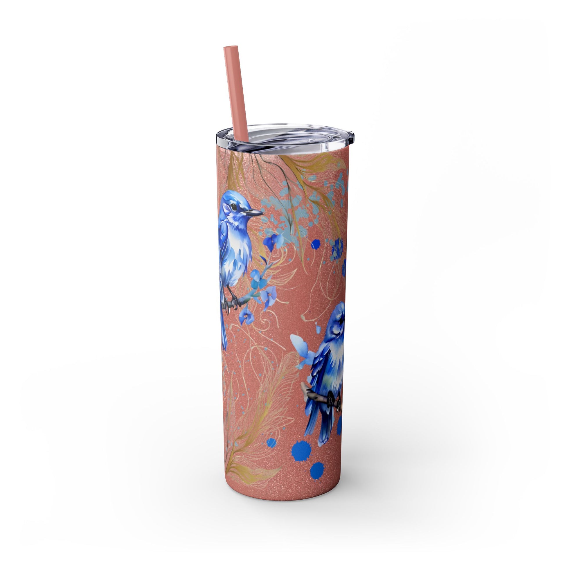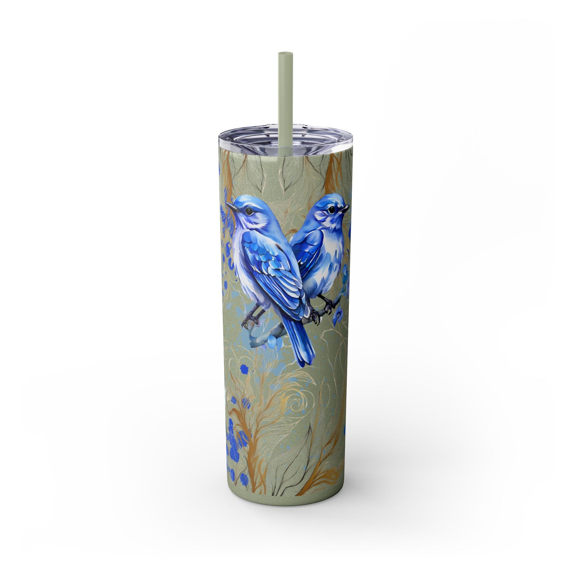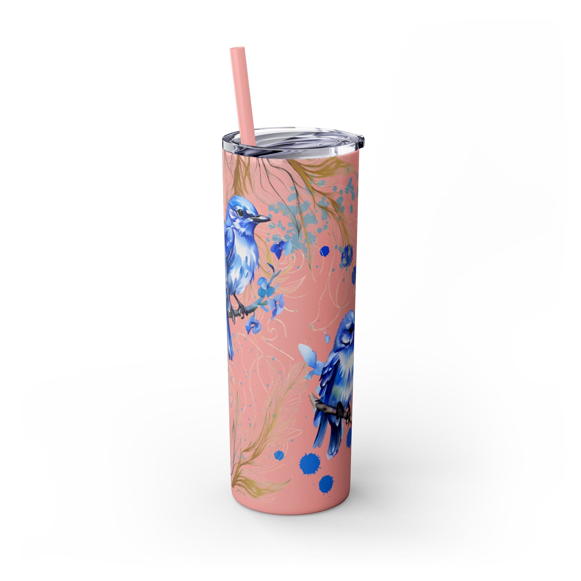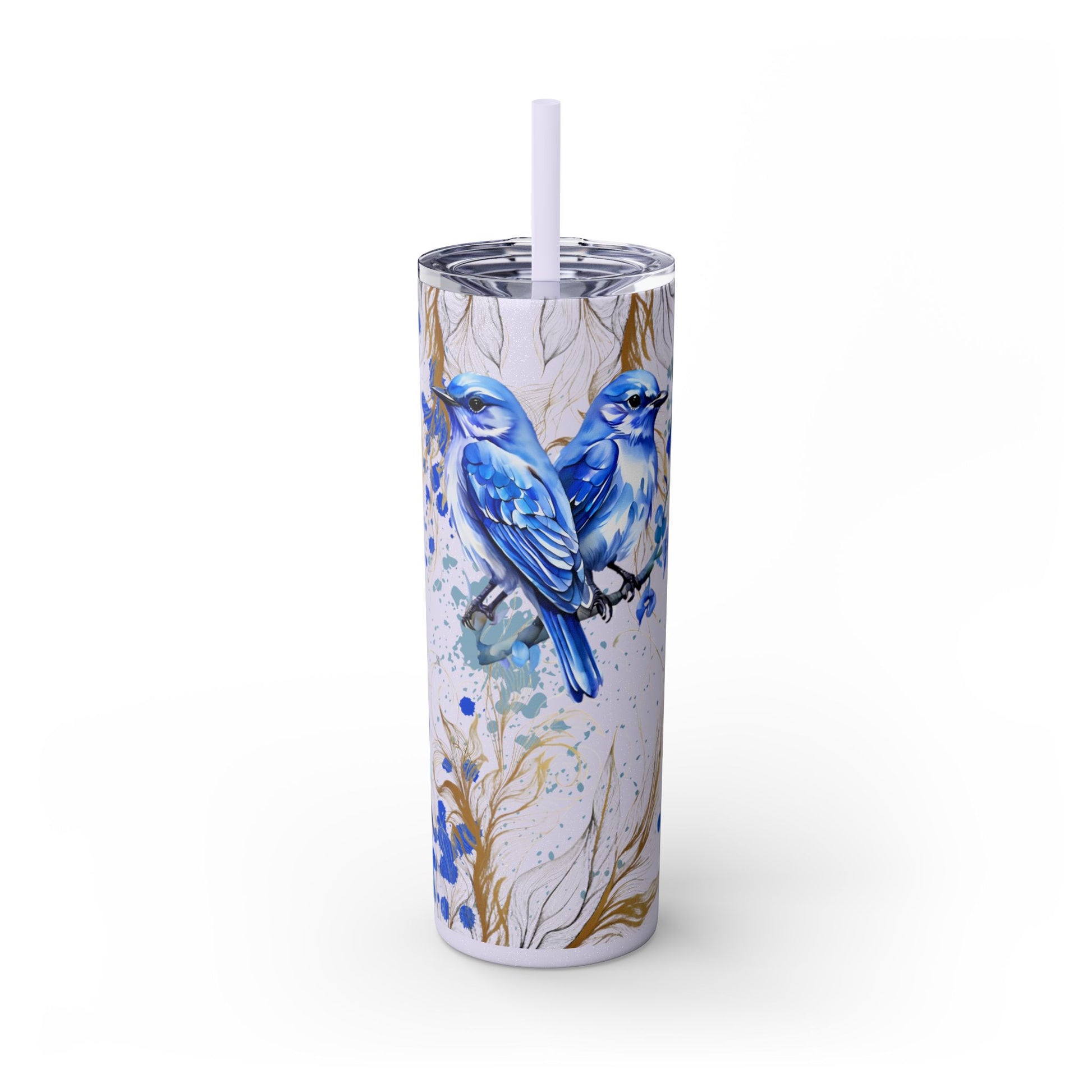 This tumbler features a beautiful design of bluebirds, offering a serene and peaceful vibe. Perfect for bird lovers or those who appreciate nature. Ideal for enjoying a favorite beverage on the go or at home. Great for birthdays, Mother's Day, or as a thoughtful gift for a friend.