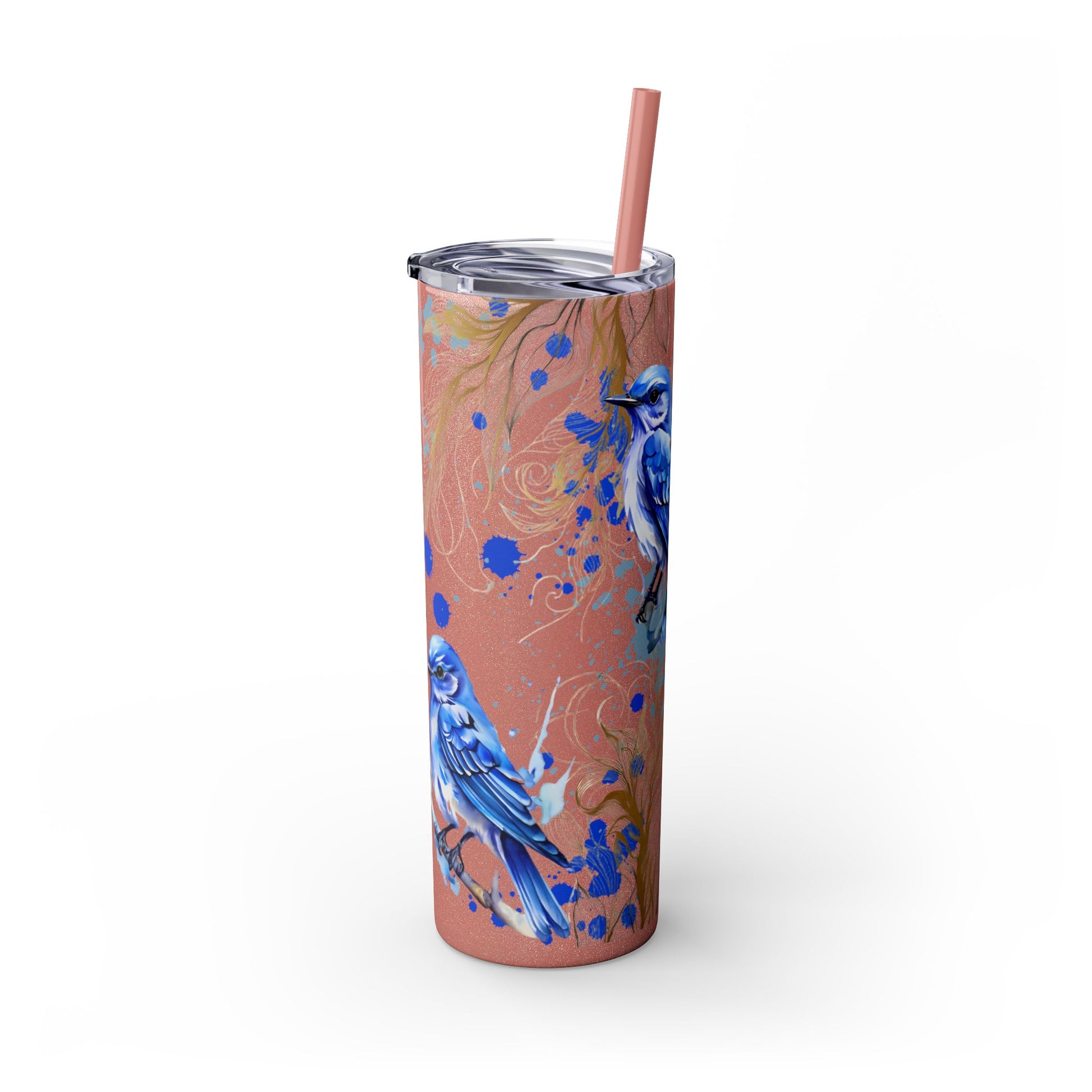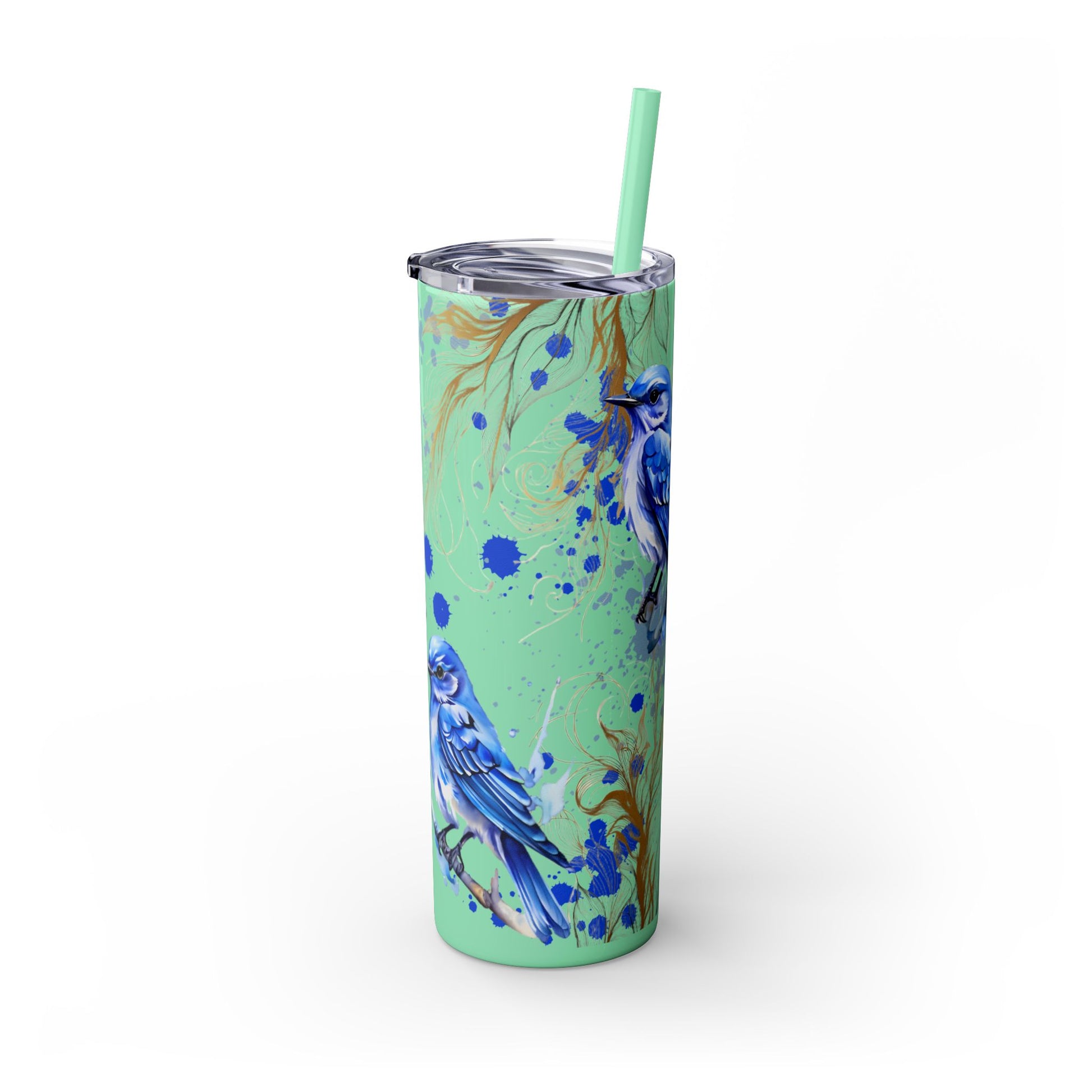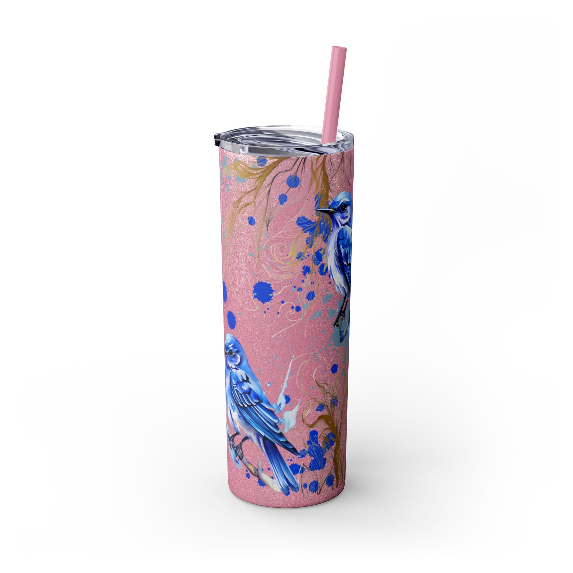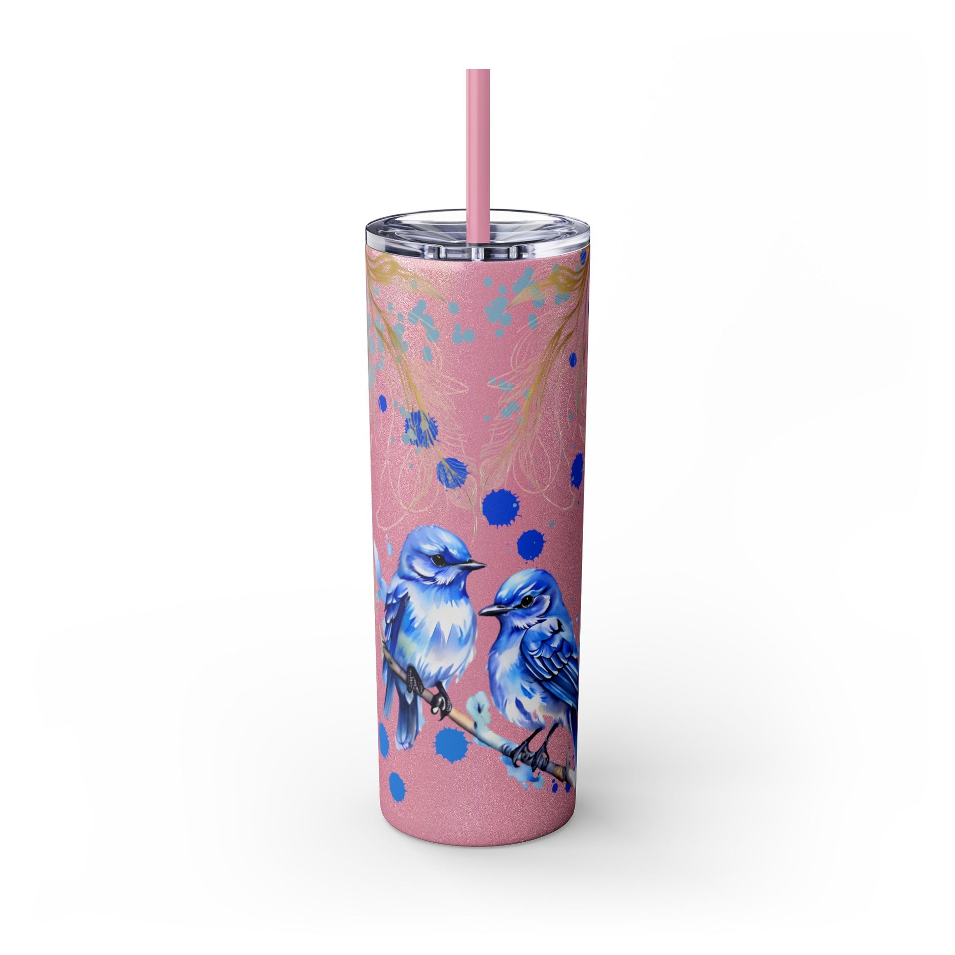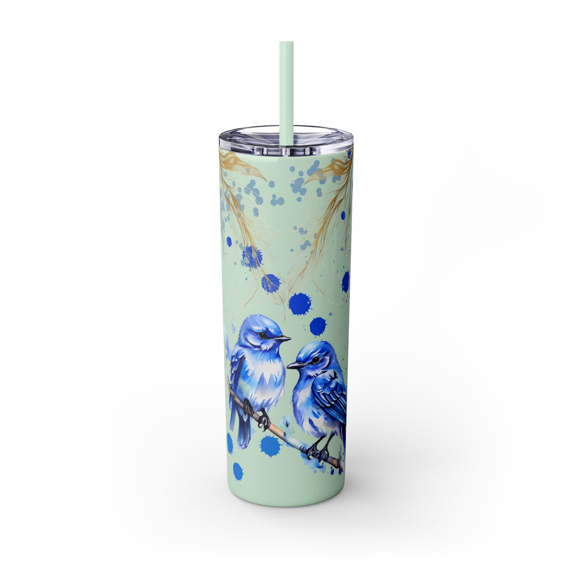 This tumbler features a beautiful design of bluebirds, offering a serene and peaceful vibe. Perfect for bird lovers or those who appreciate nature. Ideal for enjoying a favorite beverage on the go or at home. Great for birthdays, Mother's Day, or as a thoughtful gift for a friend.