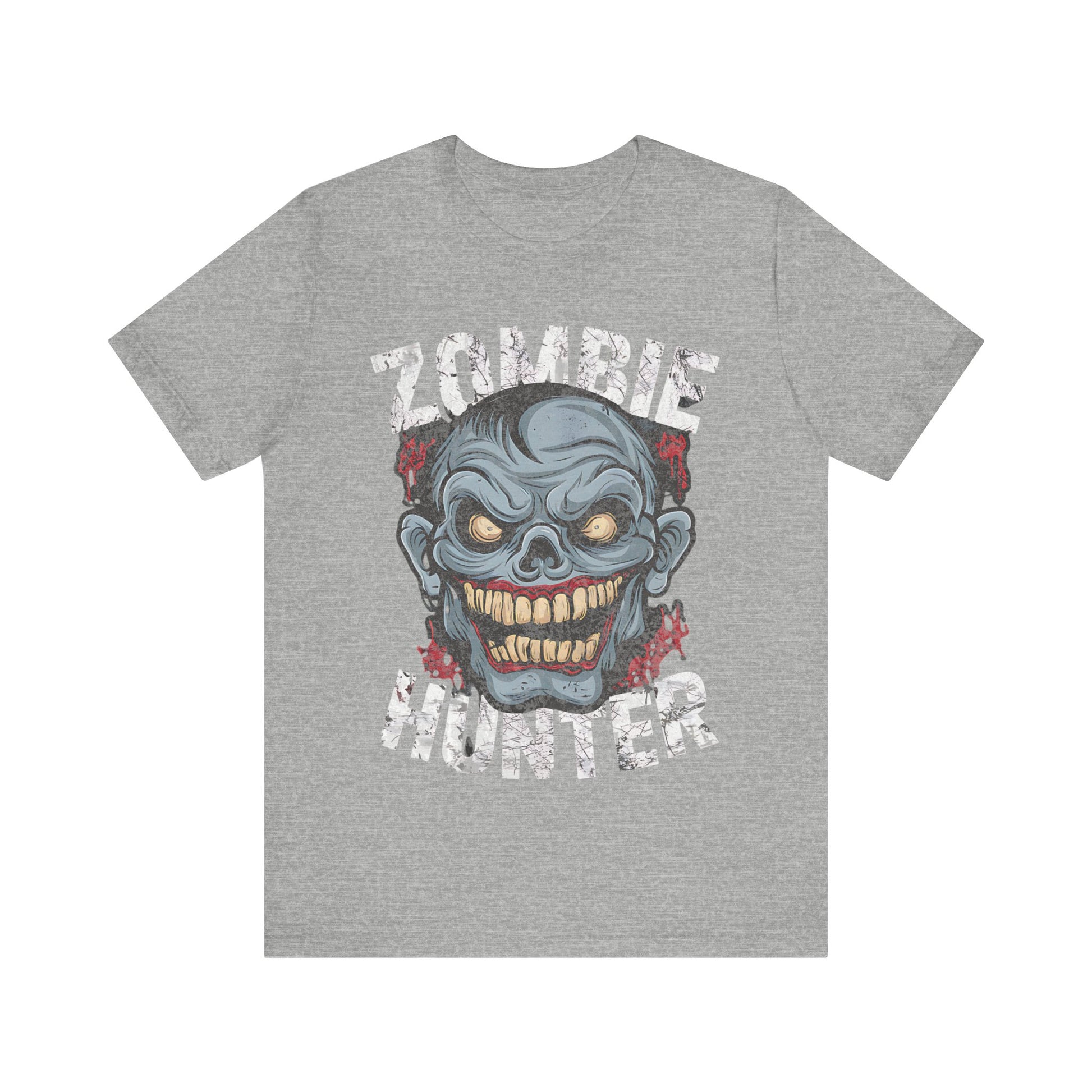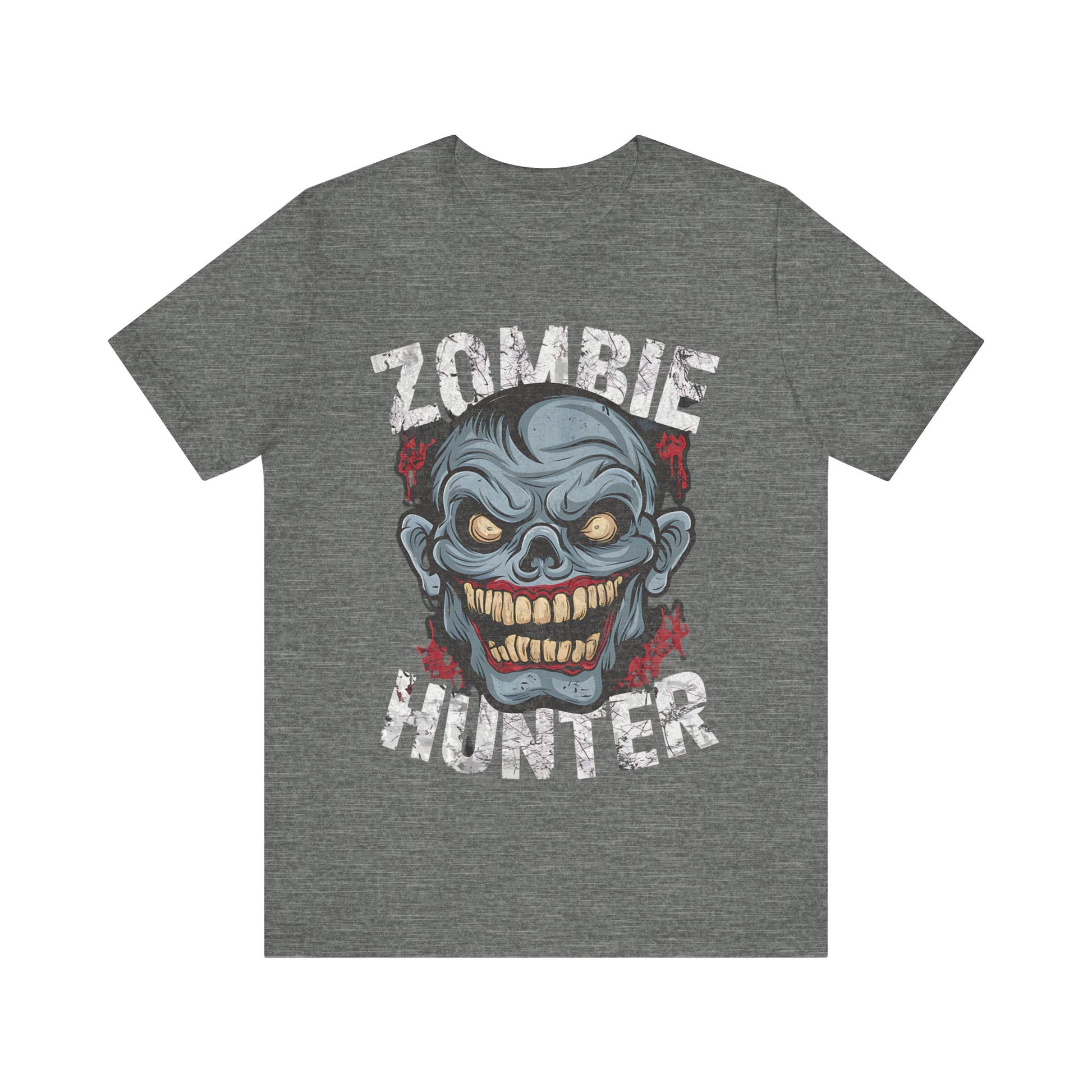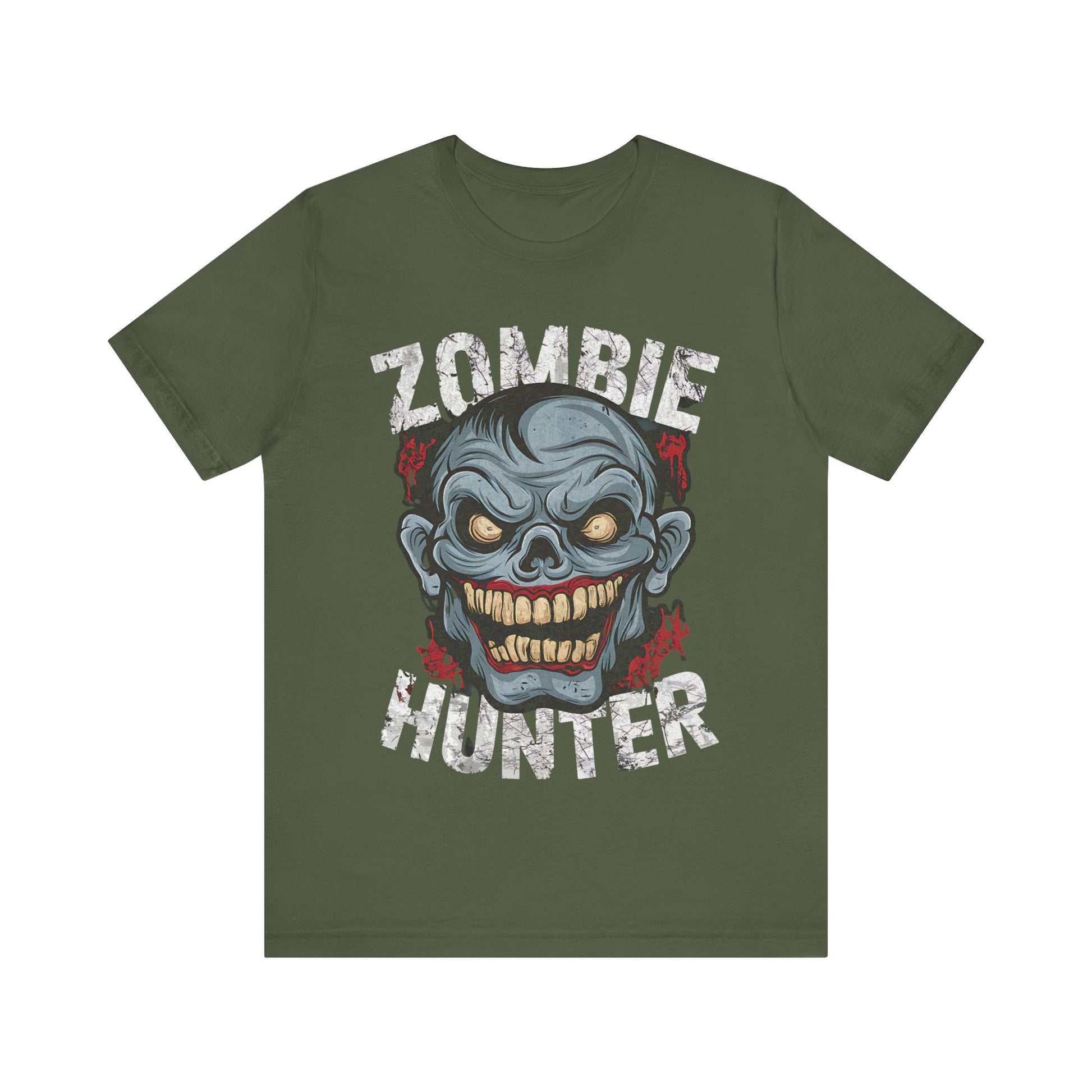 Unleash your inner survivor with this gritty Zombie Hunter t-shirt. Featuring a menacing zombie face and bold, distressed lettering, this design perfectly captures the post-apocalyptic vibe. Whether you're a fan of horror or just ready to take on the undead, this shirt adds a dark, edgy touch to your wardrobe. Made for those who love a gritty style, this tee is perfect for Halloween or any time you want to show off your zombie-slaying spirit.